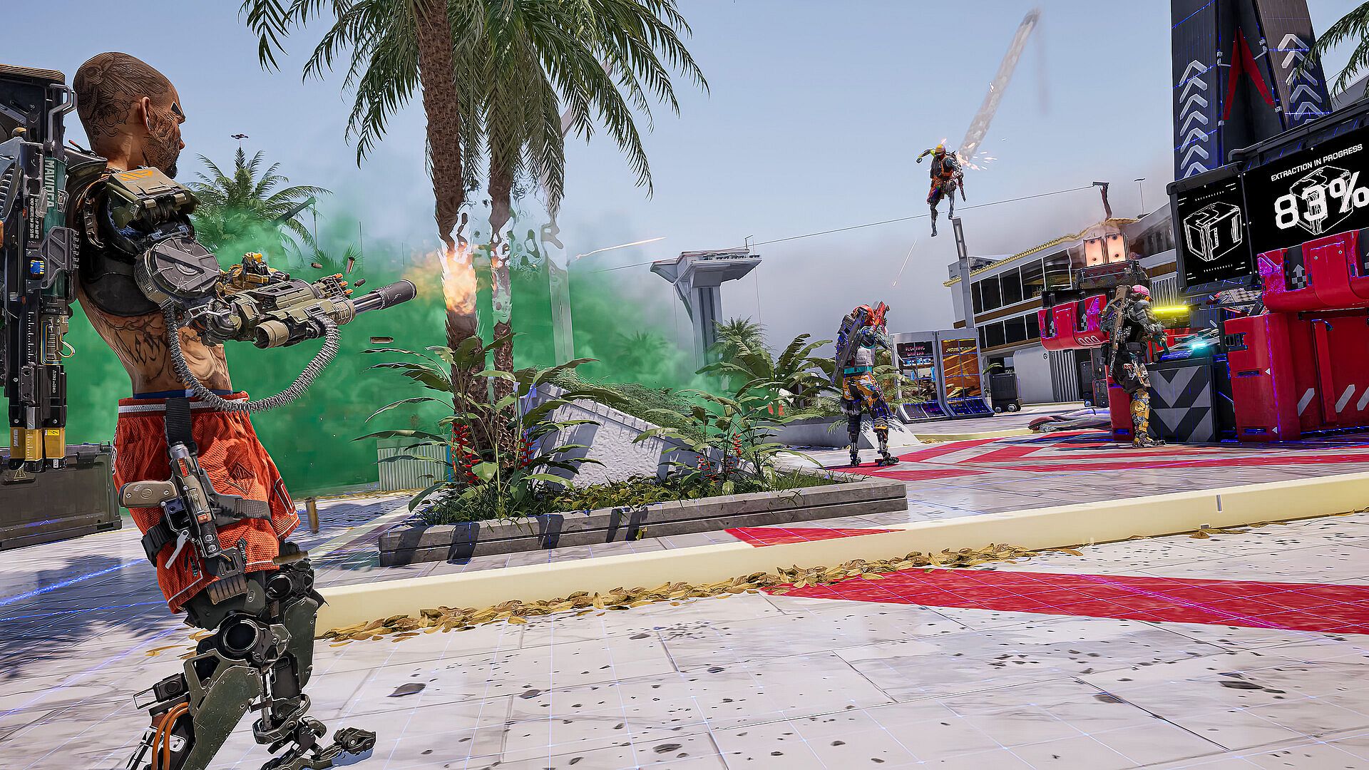 Off The Grid takes movement to the next level with a dexterous aerial movement system driven by advanced jetpacks. With strong utilization of the verticality of the maps players are able to both enter and exit fights rapidly, rewarding aggression and a fast-paced gameplay.