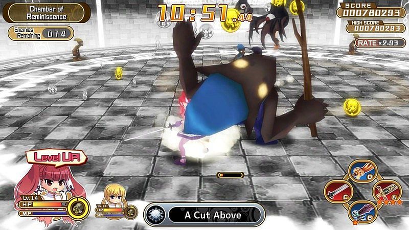 Story mode centers on the charming friendship of the girls, fully voiced in Japanese. You can also play your heart out in Score Attack, Challenge mode, weapon switching Dungeon mode and many more!Includes many accessories such as Cat Ears, Spectacles, Headphones, to make your gal look stylish and perk up your skills for battle!