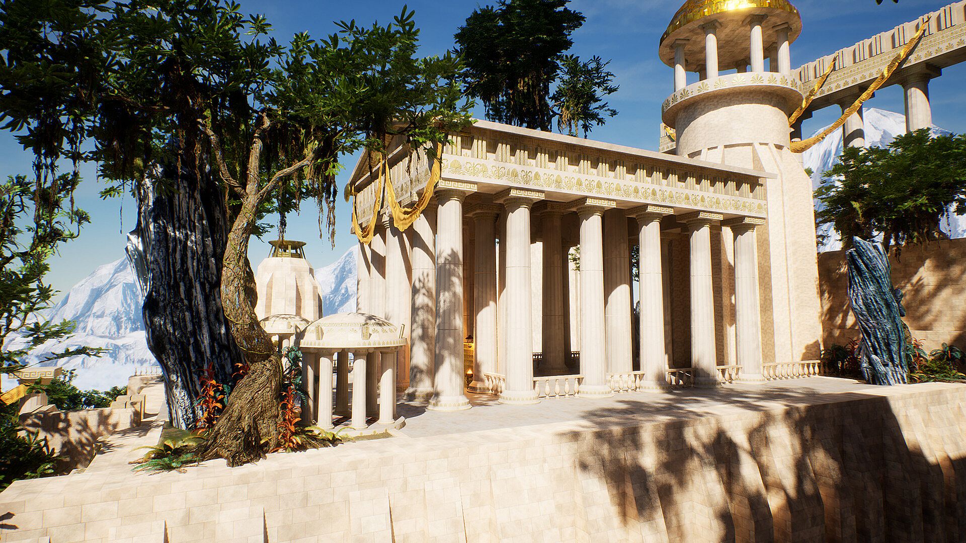 • A World Above the Clouds: Immerse yourself in a stunning isometric world where every temple is a reflection of its god's domain. From Zeus's stormy sanctuaries to Hades's shadowy fortress, each location is crafted with care and brimming with lore.
