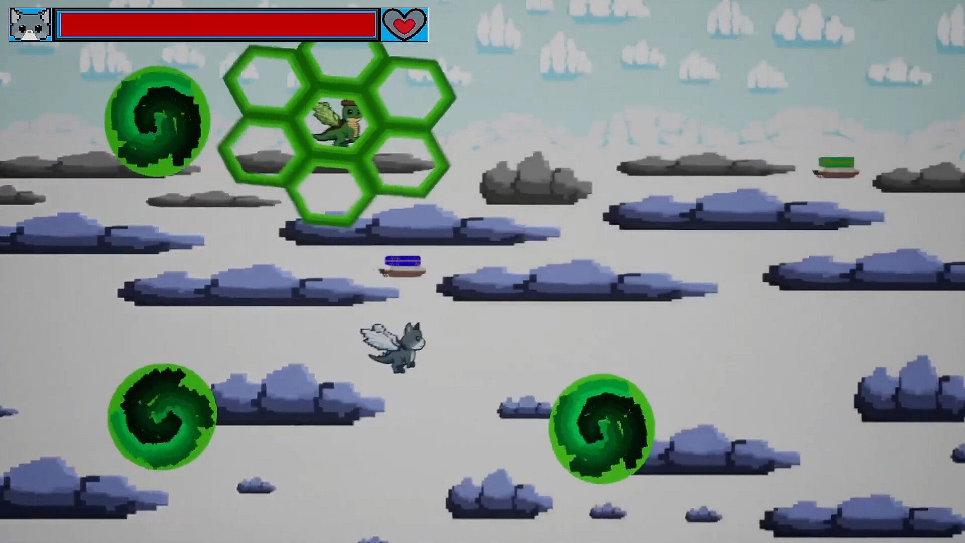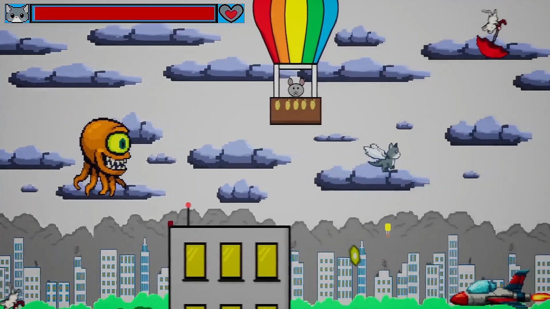 A fully flushed out Flappy game with four game modes, The Arcade Classic mode with fifteen levels having a boss fight at the end of every level, Classic Flappy Mode, Endless Challenge where the level gets progressively harder over time and a balloon pop carnival mini game that gives the player special elemental powers.