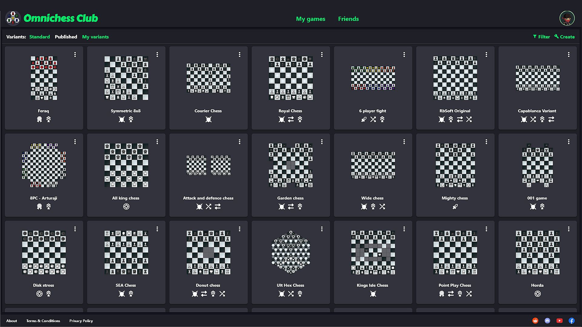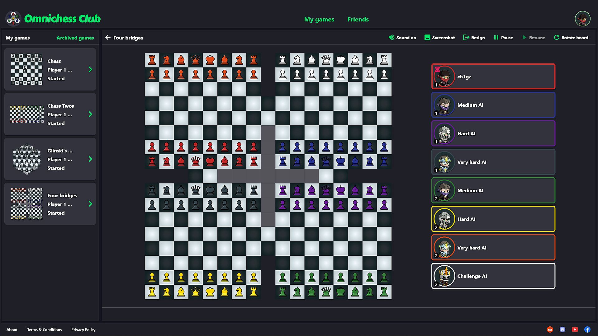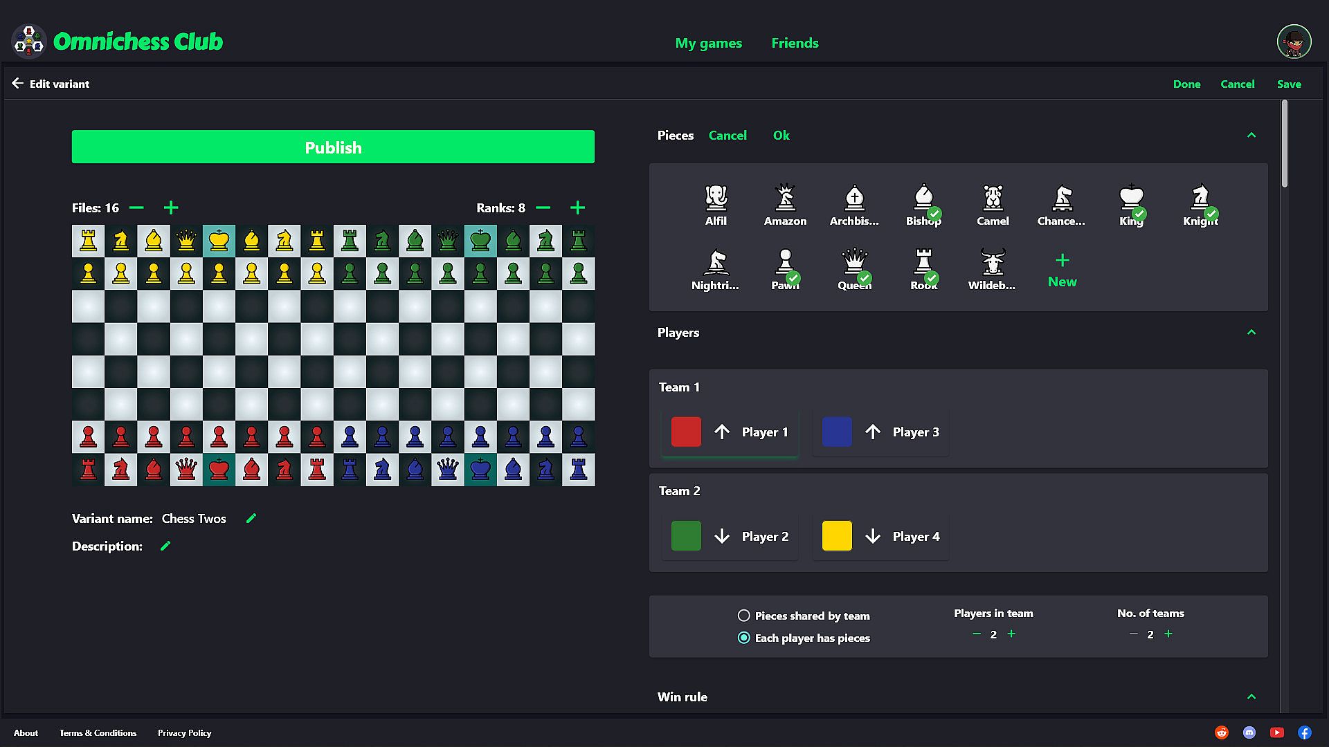 Omnichess is the game that allows you to design and play your very own chess variants! With AI and online play there are a huge variety of options including:
