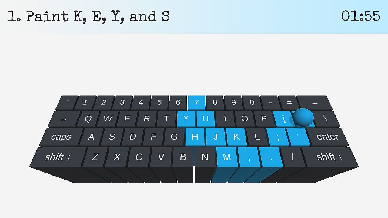 Tap, mash, and time your keystrokes to interact with this wacky world of tactile experiments. Every level tests your creativity, logic, or reflexes... all with nothing but your keyboard!