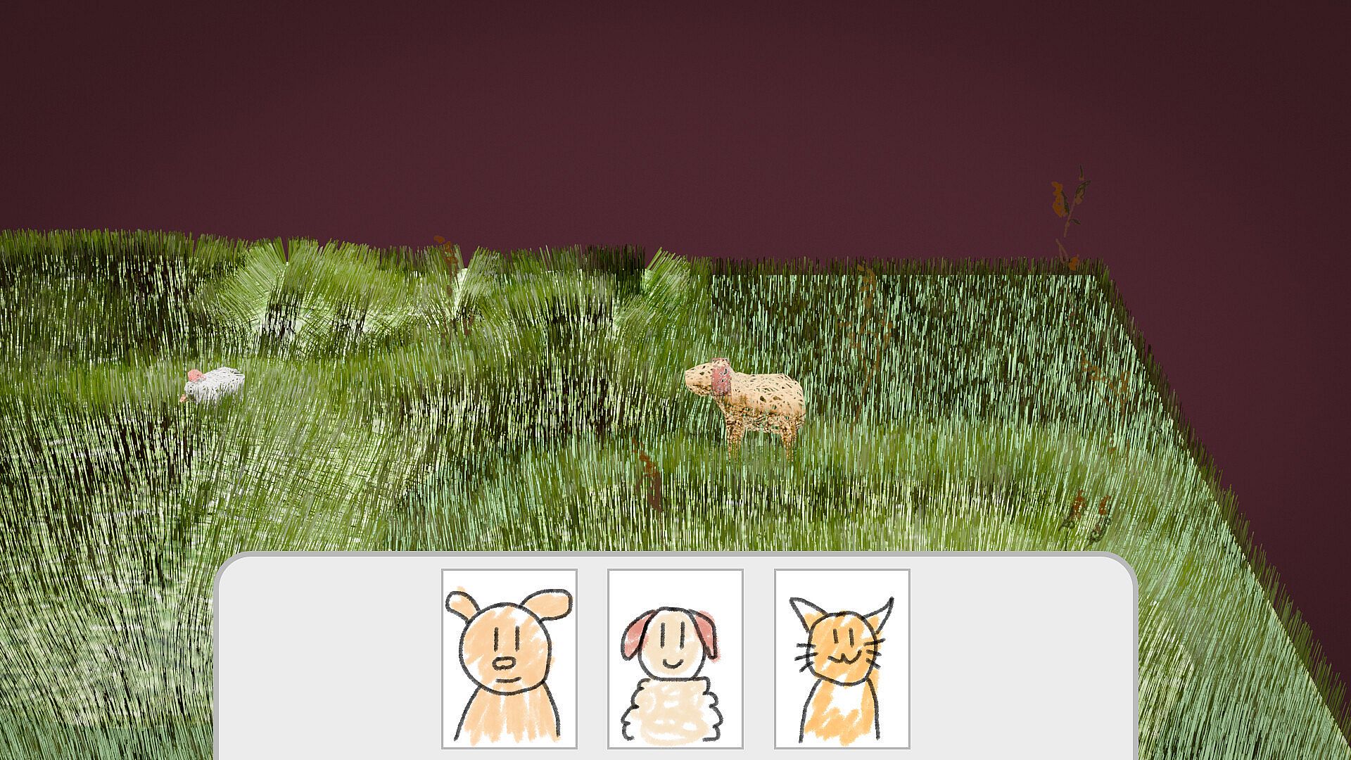 Each level is a small puzzle that can only be solved by placing the correct cards in the right locations. For example, placing a dog card near sheep will cause the dog to guide them into the barn and complete the level. Placing the wrong card doesn’t cause failure or punishment - it simply leads to a different, often cute interaction. A cat, for example, may completely ignore the sheep or start playing with them.