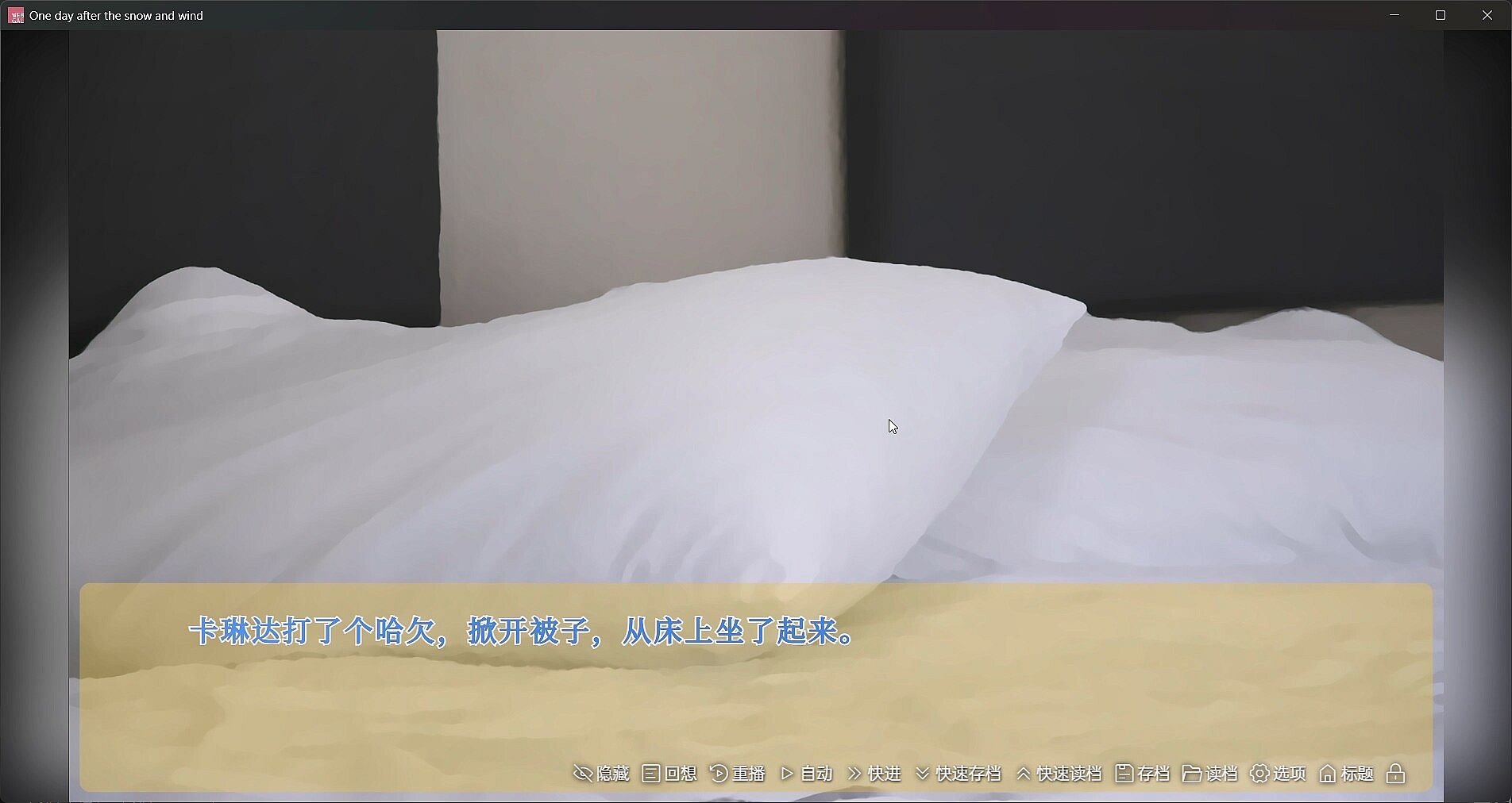 A short indie visual novel unfolds on a morning after a snowstorm in a parallel future universe. Humanity clings to life in small, primitive communities following pandemics and nuclear wars. Kalinda stirs awake to her partner's warm greeting, drawing players into this brief tale. Simple controls drive the casual experience: left-click or Enter to progress dialogue, right-click to go back, and Ctrl for quick skips. The ten-minute runtime suits quick sessions on PC. Fans of concise visual novels find a perfect, low-commitment story here.