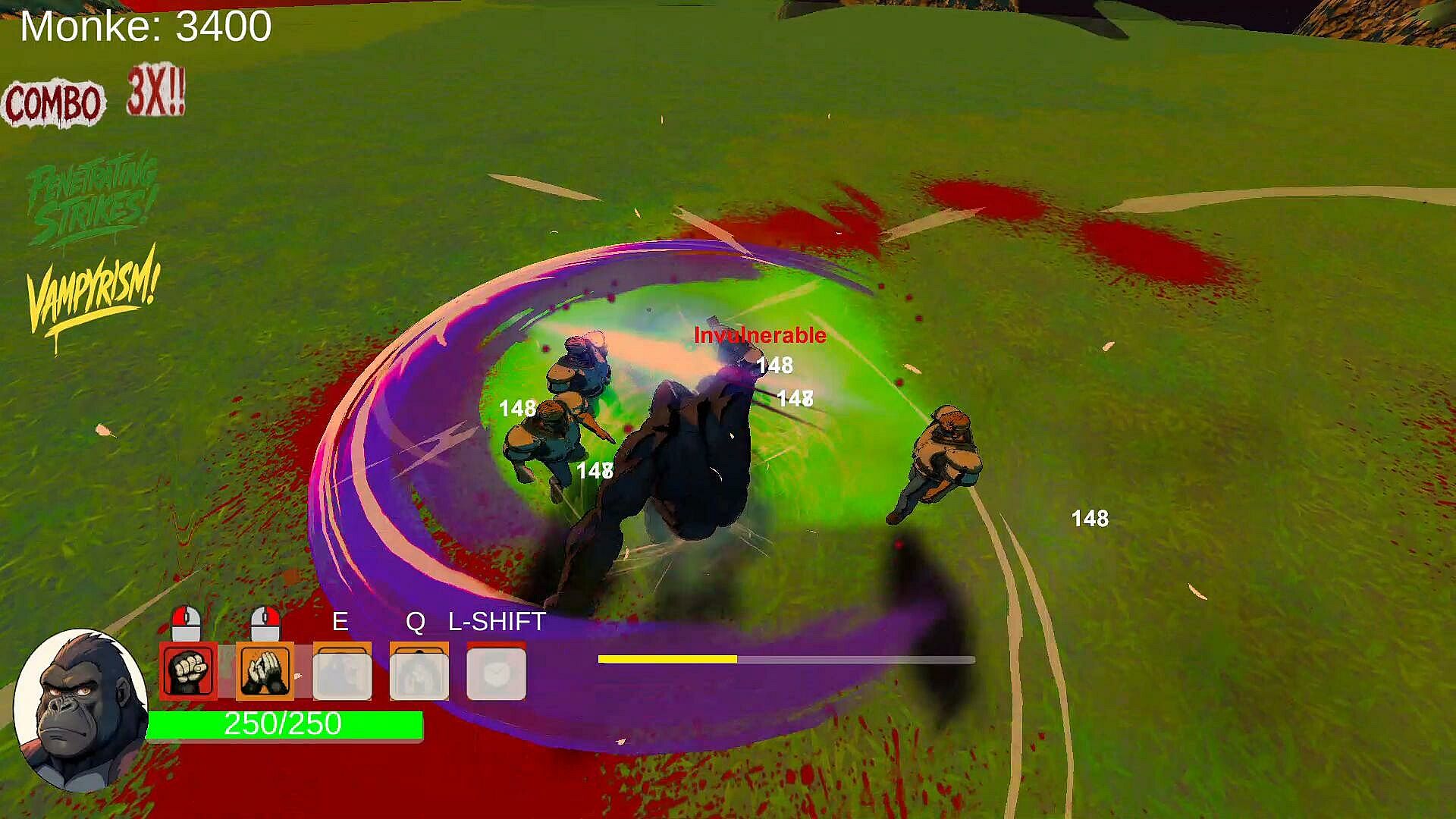 Ascend to Monke dominance, dash and smash all humans in a fast-paced action game utilizing a variety of lightning-fast and brutal attacks with relentless aggression.