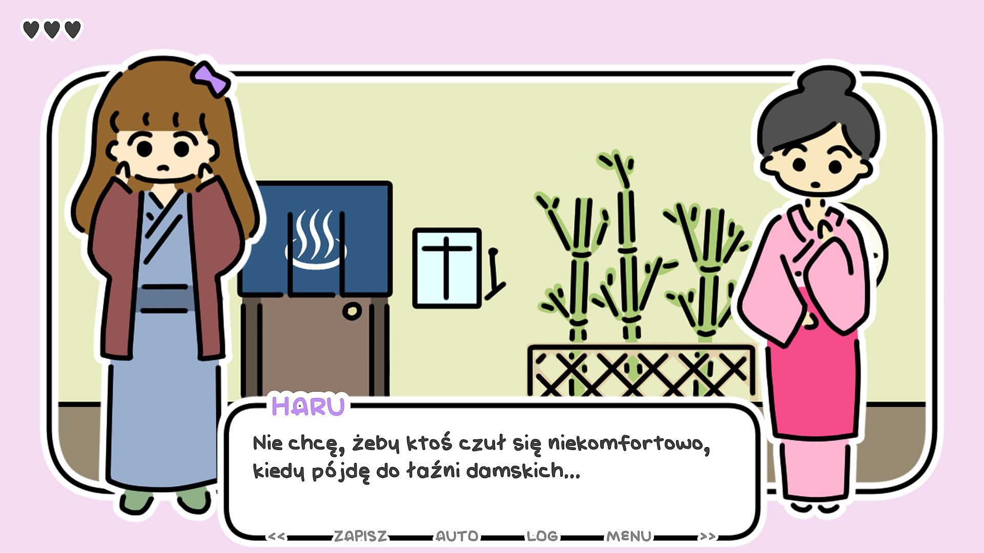 ONE NIGHT, HOT SPRINGS is a visual novel. Play as Haru, a young transgender woman, and join her at the hot springs in Japan.