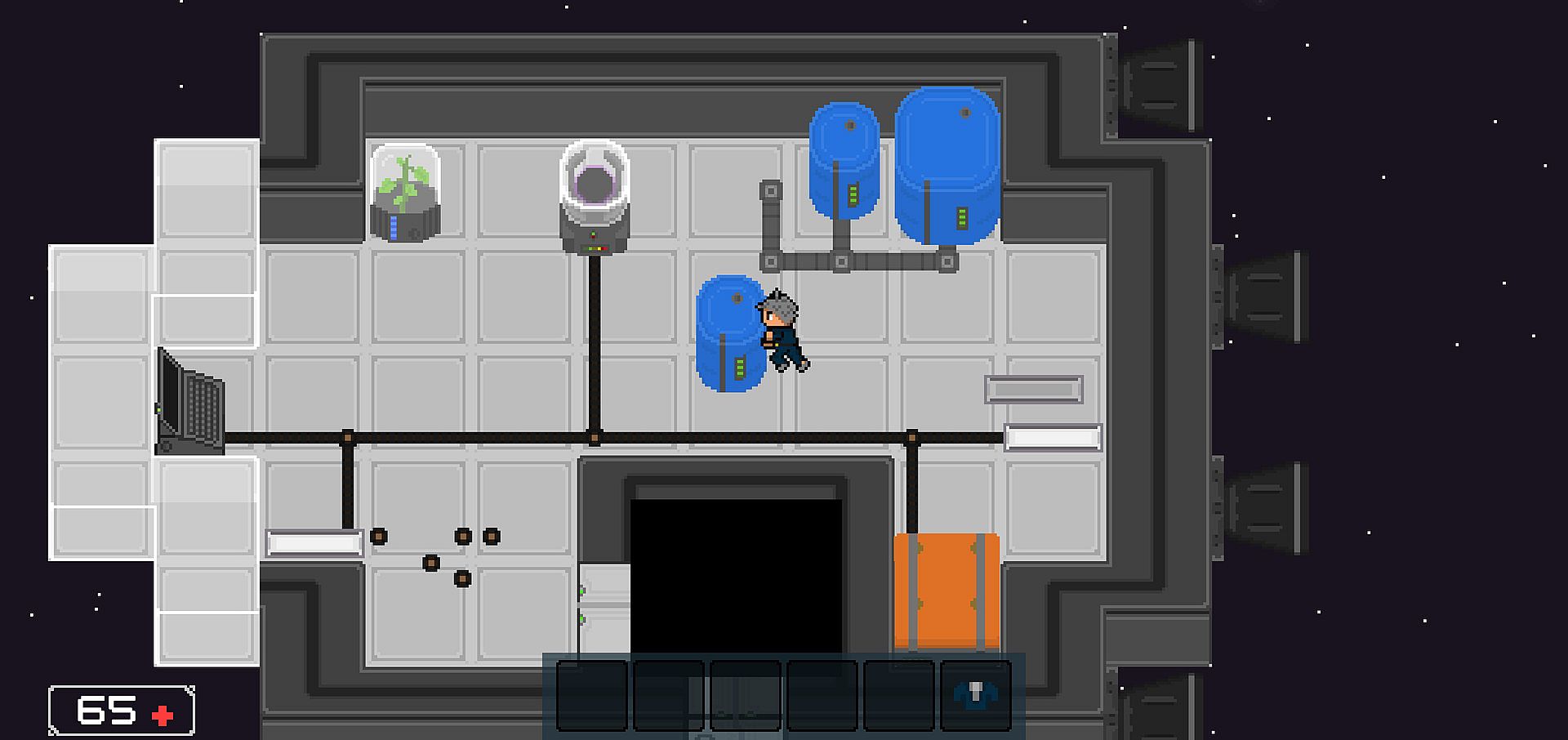 • Build machines to help run systems in your ship. Oxygen harvesters make a sufficient supply of oxygen for the crew. Storage tanks contain fuel to be used in thrusters. Computers allow the player to navigate their ship through space. Conveyor belts connect to machines to make automated systems. Energy storage units hold energy to power the ship and its components.