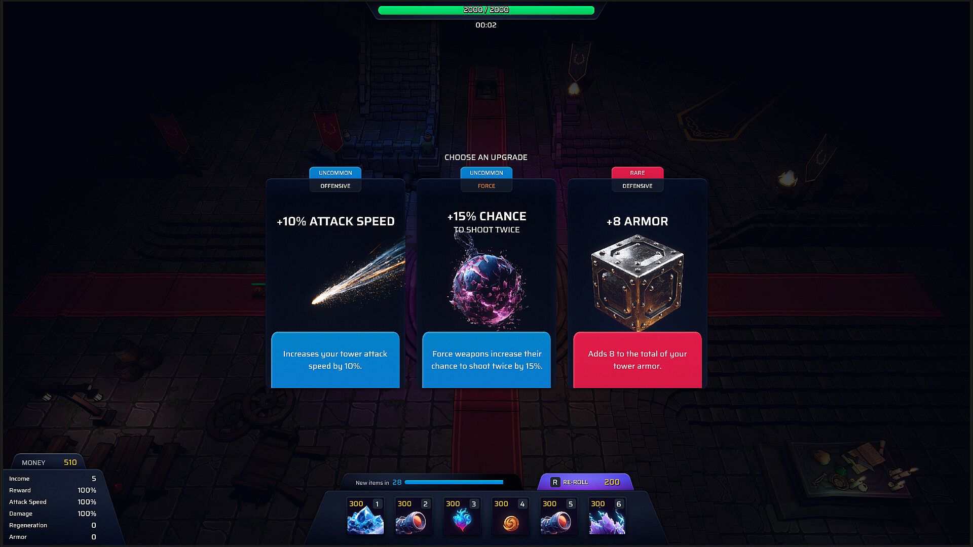 • Improve your tower's attack speed, damage, armor, health, regeneration, and more. Class and weapon-specific scaling will enable you to amplify your power exponentially.