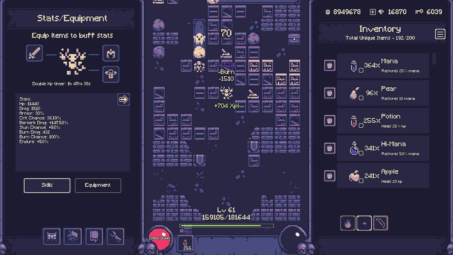If you love 8-bit roguelikes and are looking for something casual to play, then you should consider OneBit Adventure right now. It's meant to be a simply fun experience where you can level up, play around with different combinations of weapons and skills to reach the furthest. It's a relaxing game, but also has leaderboards to compete with other OneBit players around the world!