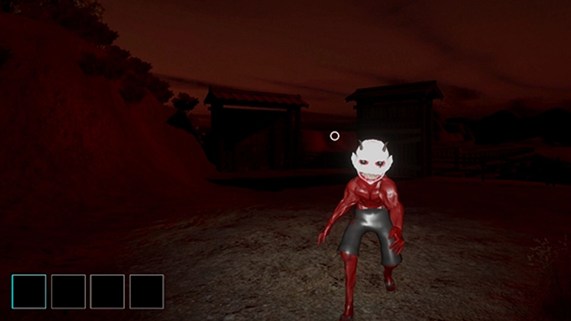 The main character wanders into a village while climbing a mountain. However, there is not a soul in the village, but an ogre-like monster with its whole body dyed red is roaming around.