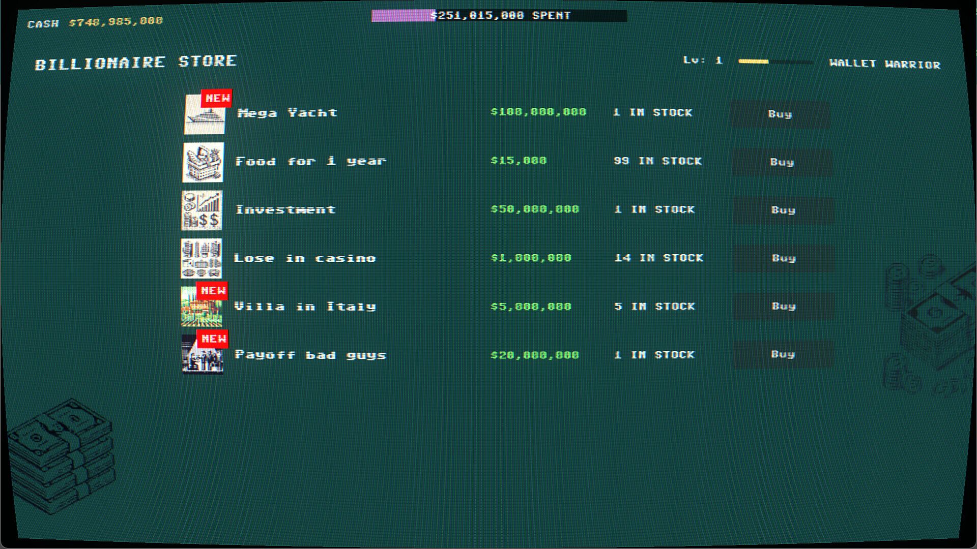 In this game your goal is to spend a billion dollars on cars, houses, yachts.