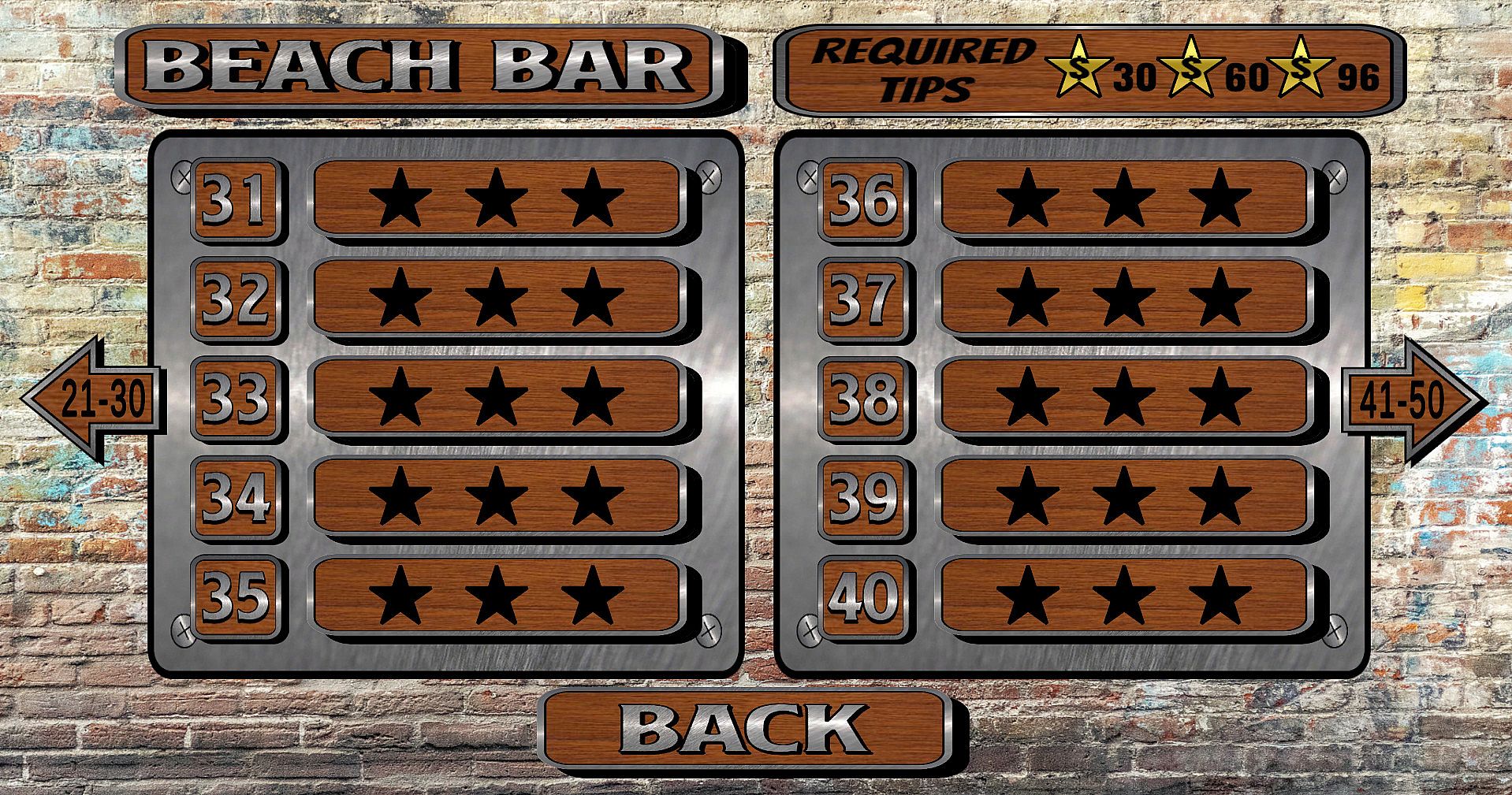When a bartender serves a drink, it's customary to leave a tip.  OPEN BAR is no different! When you construct well-crafted cocktail in a promptly manner, the customers will generously leave you a Tip.  You'll collect Tips through out the level to earn Stars.  Earn up to 3 Stars per Level!  Earning Stars will unlock new Locations, new Drinks and more!  Do YOU have what it takes to be a Master Bartender?  Good Luck, and Happy Pouring!