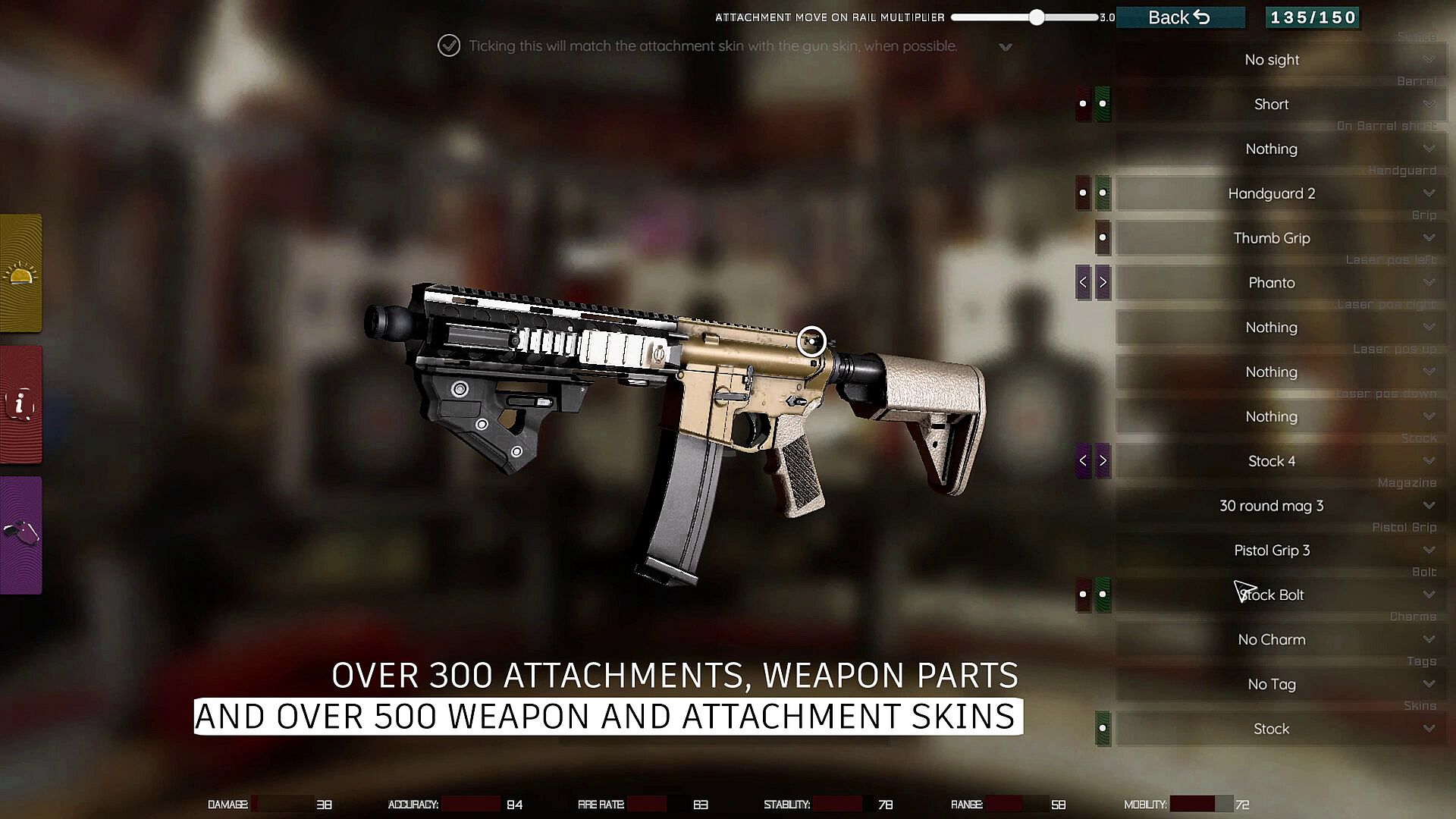 - There is a decent Tarkov-like weapon customization system as well as some cursed attachment setups available for you to play with.