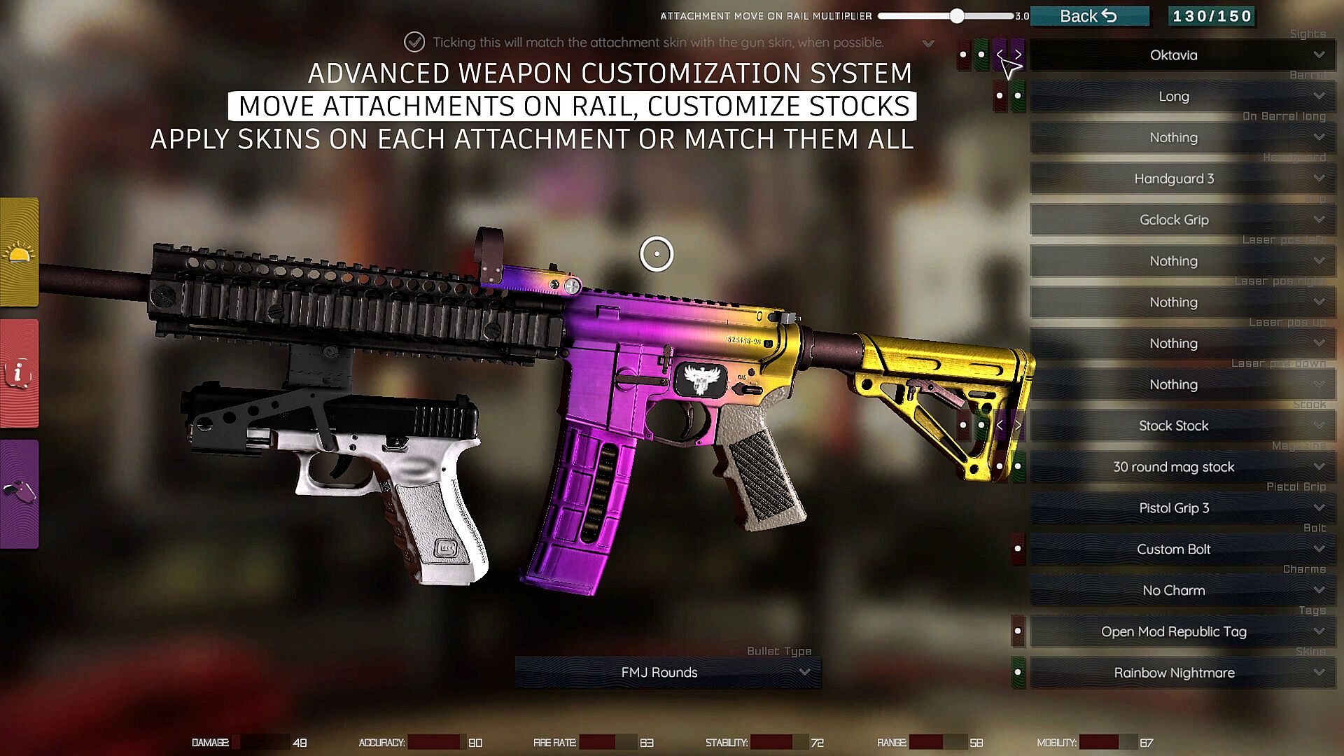 - We've recently implemented the attachment skin system which allows the players to equip a different skin for any part of the weapon or match the attachment skin with the gun skin.