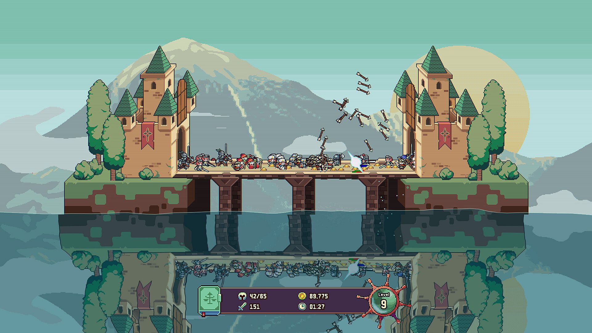 Lift the enemy's gate "little by little" to fight and gather gold from fallen foes.