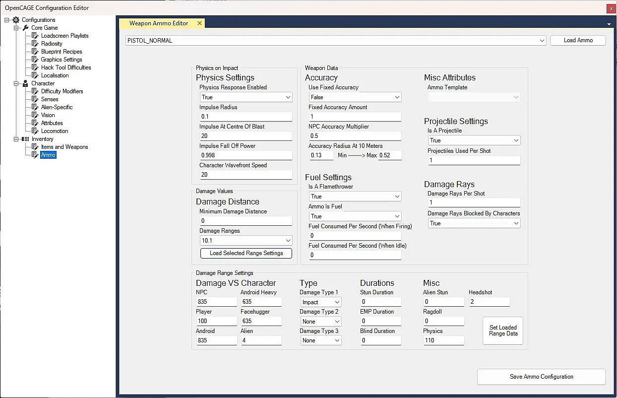 Edit Configurations: A tool to modify a range of game configurations (including weapons, ammo, NPC viewcones and locomotion, player attributes, and more)