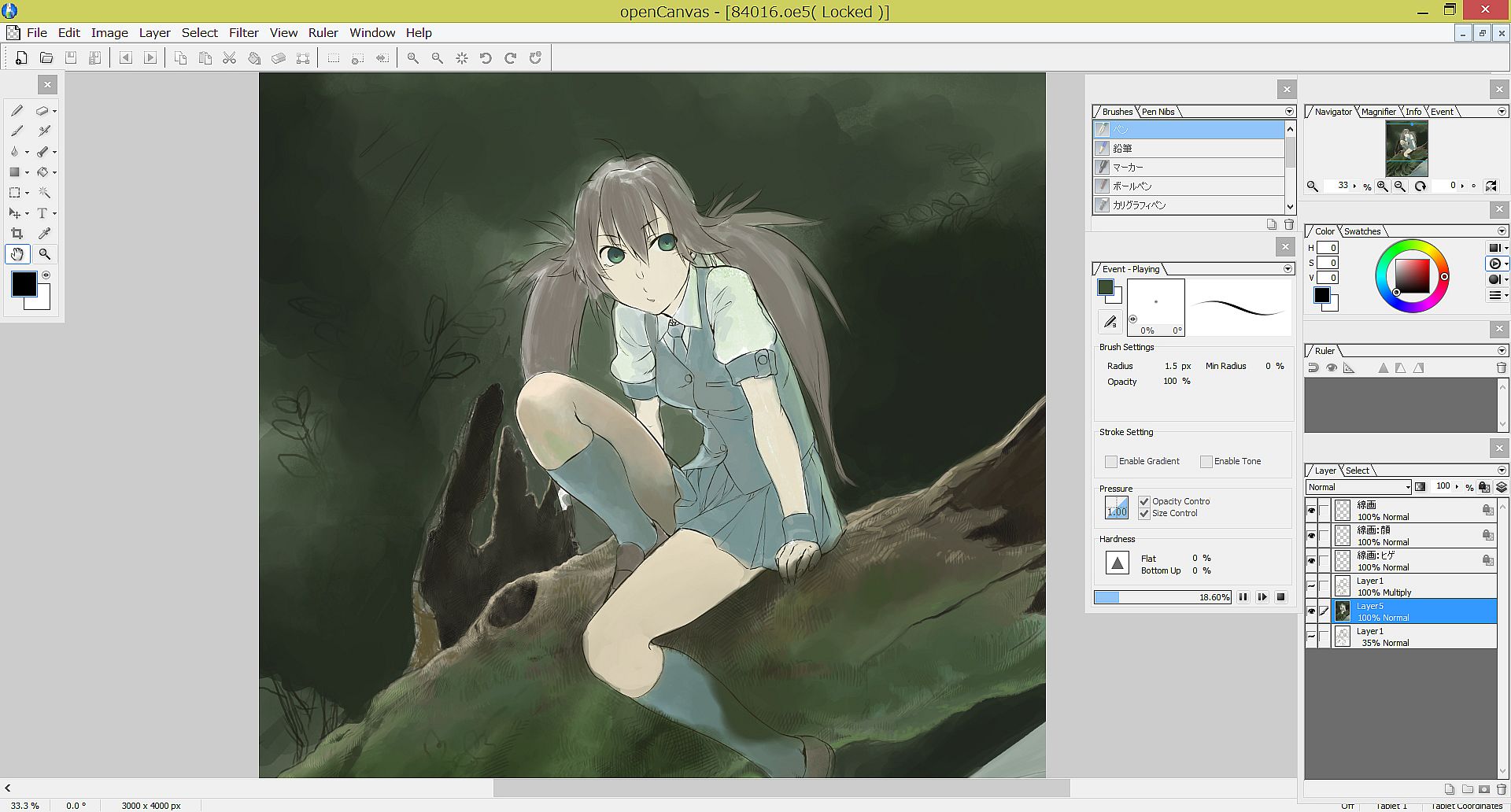 The greatest feature of GraphicEditor openCanvas is the Event function that enables you to record/replay the drawing procedure. By using this function, it shows the drawing procedure, that you have never been able to watch, via openCanvas software or the PGN community website. You can learn drawing techniques, brush setting, filter usgae, and many more from advanced users.
