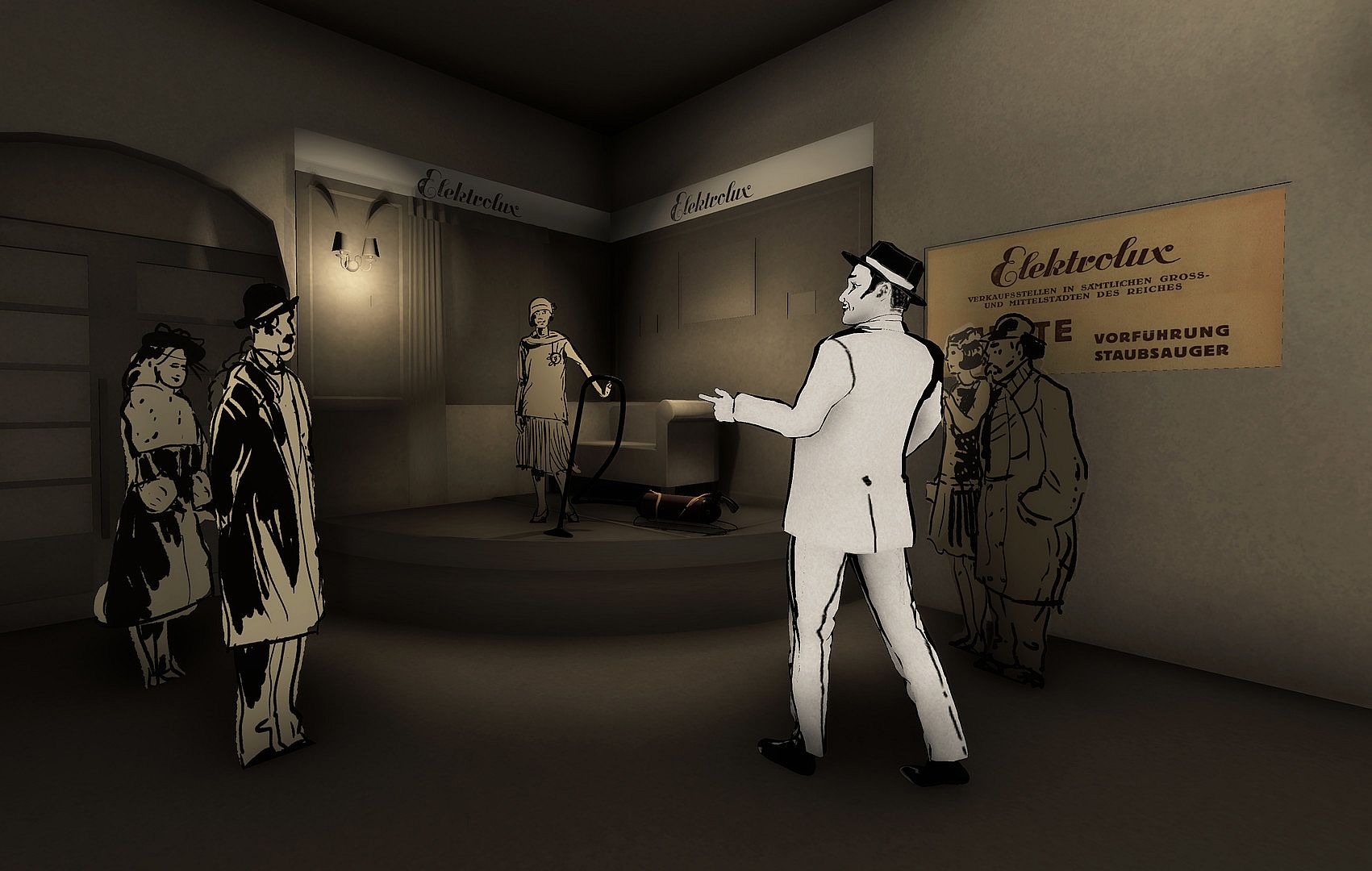 Three protagonists each invite us to join them on their unique journey down memory lane at the Grosse Schauspielhaus in Berlin. First time visitor Walter Schatz accompanies us through the impressive foyers and the colossal auditorium; celebrated singer Fritzi Massary offers a peek into the cosmos of a star; young lighting technician Otto Kempowski guides us through the fascinating world of theatre engineering. Thus we peer through a digital window to visit the famous theatre’s past and explore its art and architecture spatially in the here and now.