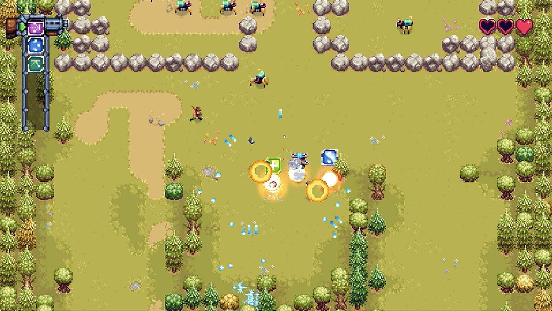 • Plentiful and stackable weapon powerups to form interesting and deadly combinations. Including but not limited to rapid, bounce, spread, split, explosive...