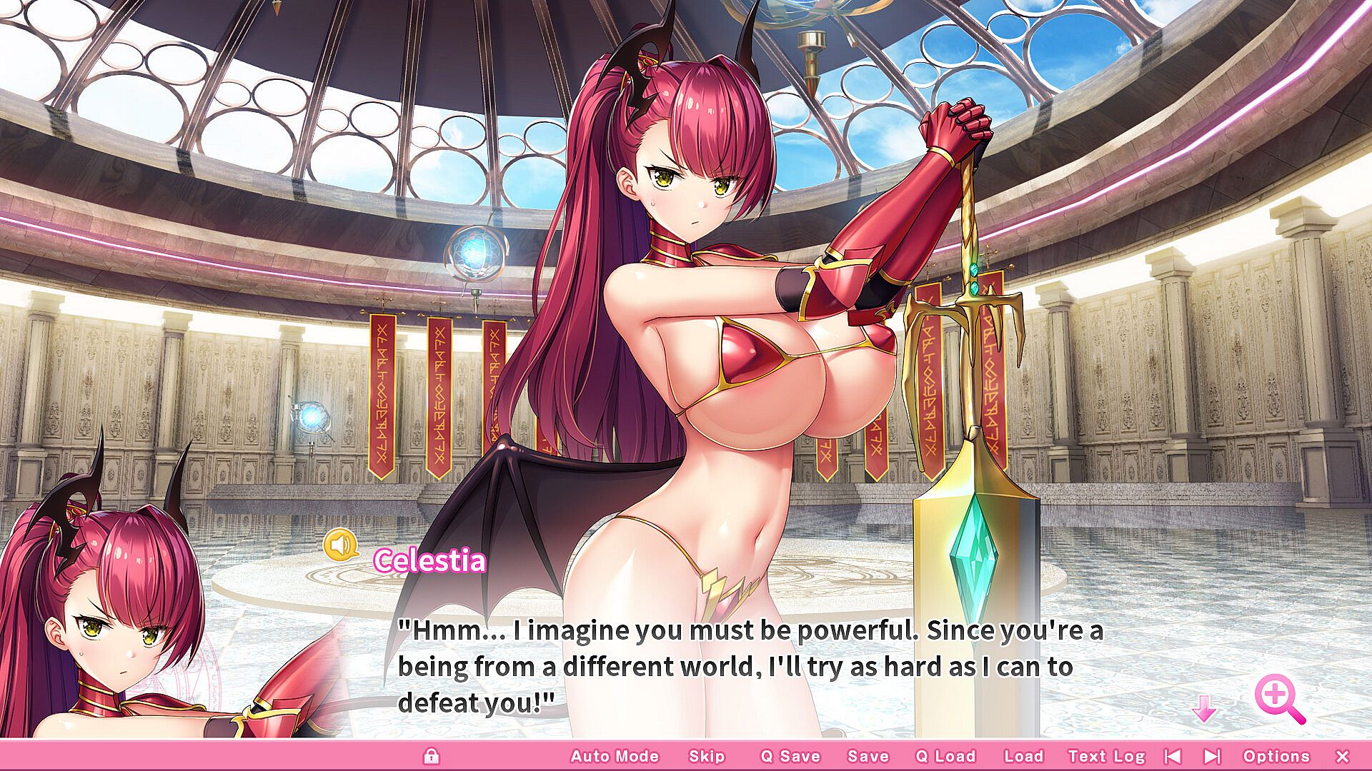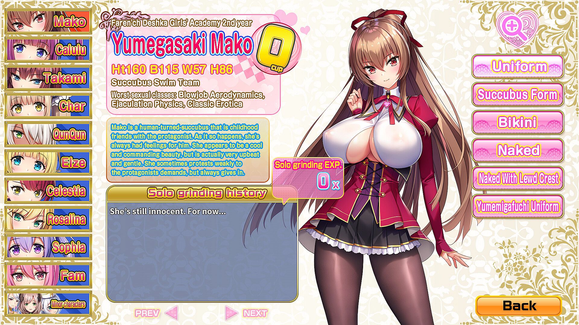OPPAI Succubus Academy: Sucky and Busty, Demonic and Lusty! is a visual novel set in the fantasy world of Faren'ch Deshka Girls' Academy. While its students are certainly top class in the bust department, the academy is in danger of closure due to its low ero rankings. It's up to Suguru to use the Book of Sexy Magic he was granted upon being transported into this world to help the prudish, busty succubi improve their ero skills and save the academy from being shut down!
