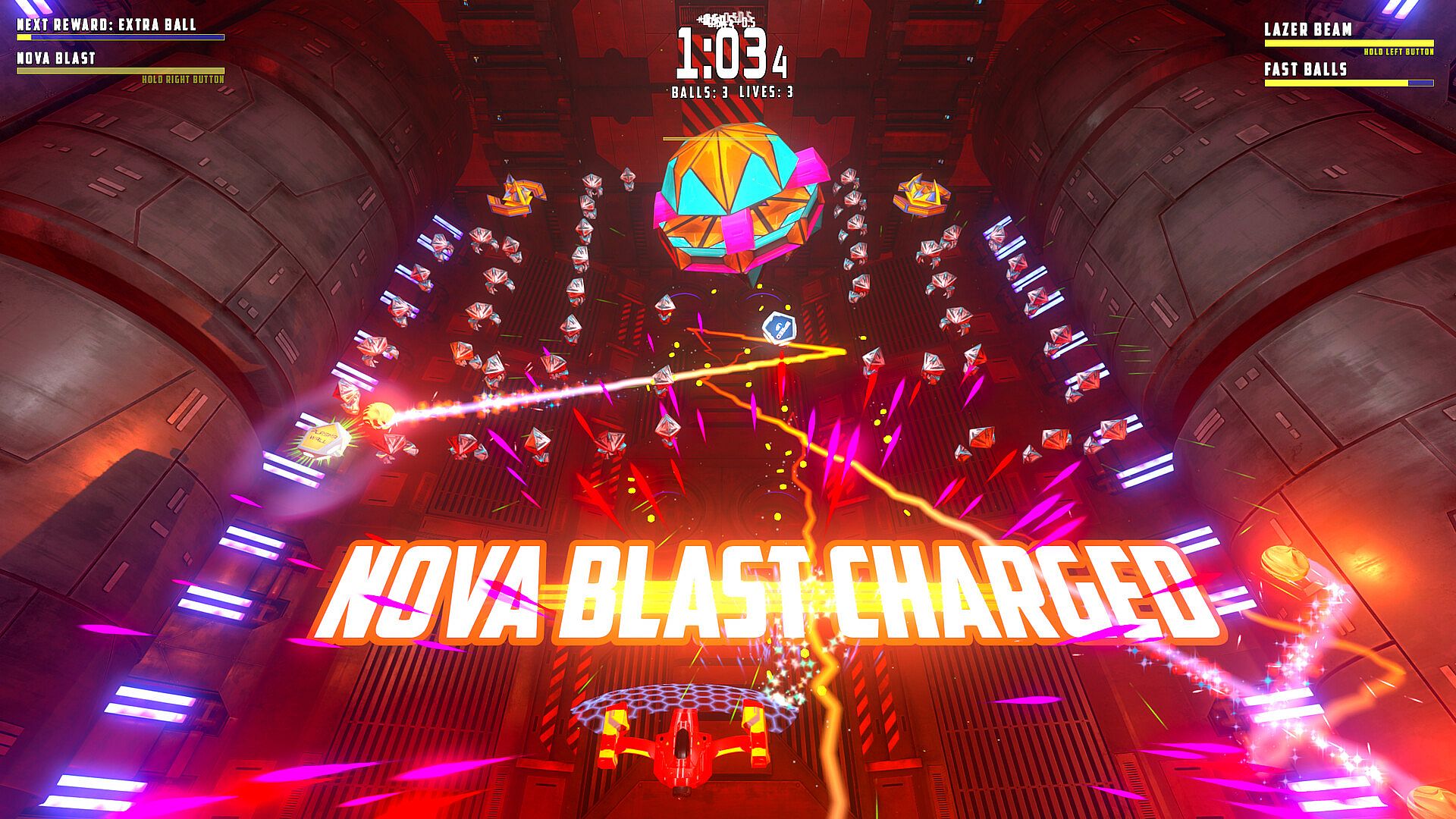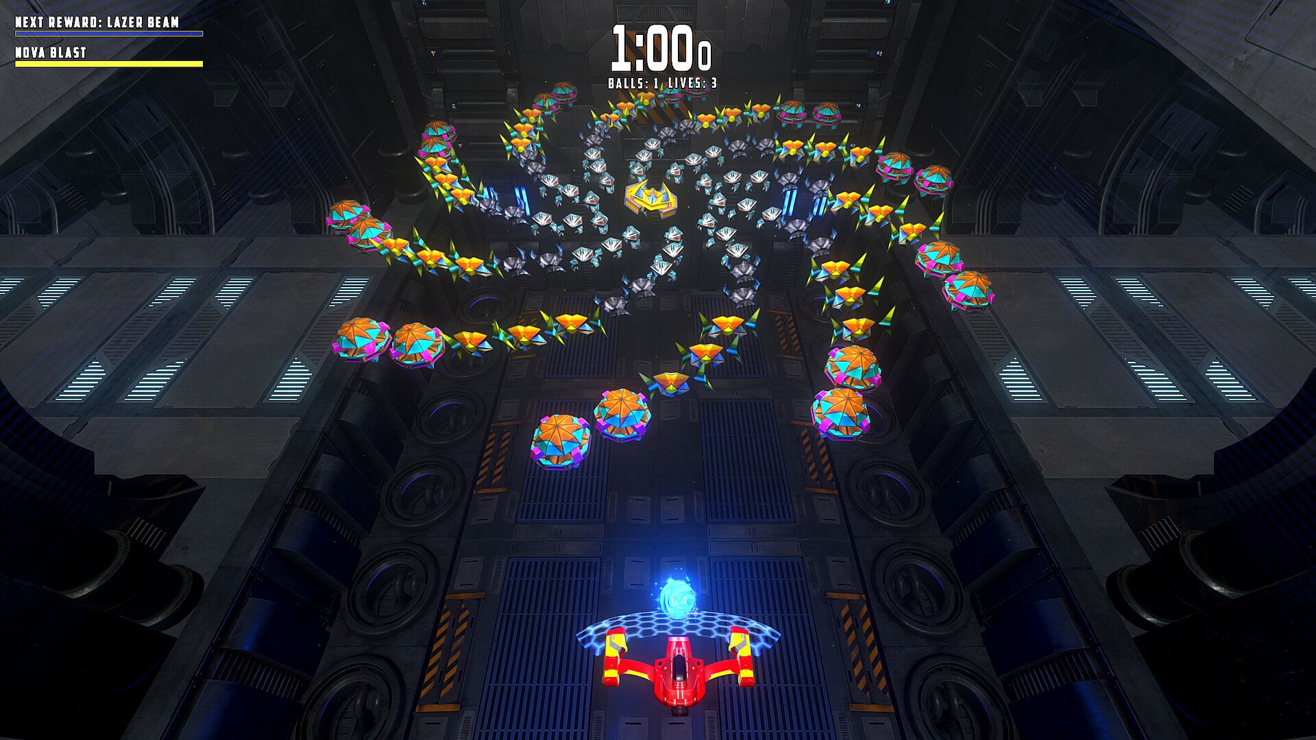 You are equipped with electrically charged, physics-based orbs that obliterate enemy drones on contact. Keep your orbs in play, gather power-ups, and fight your way through 100 levels toward freedom.