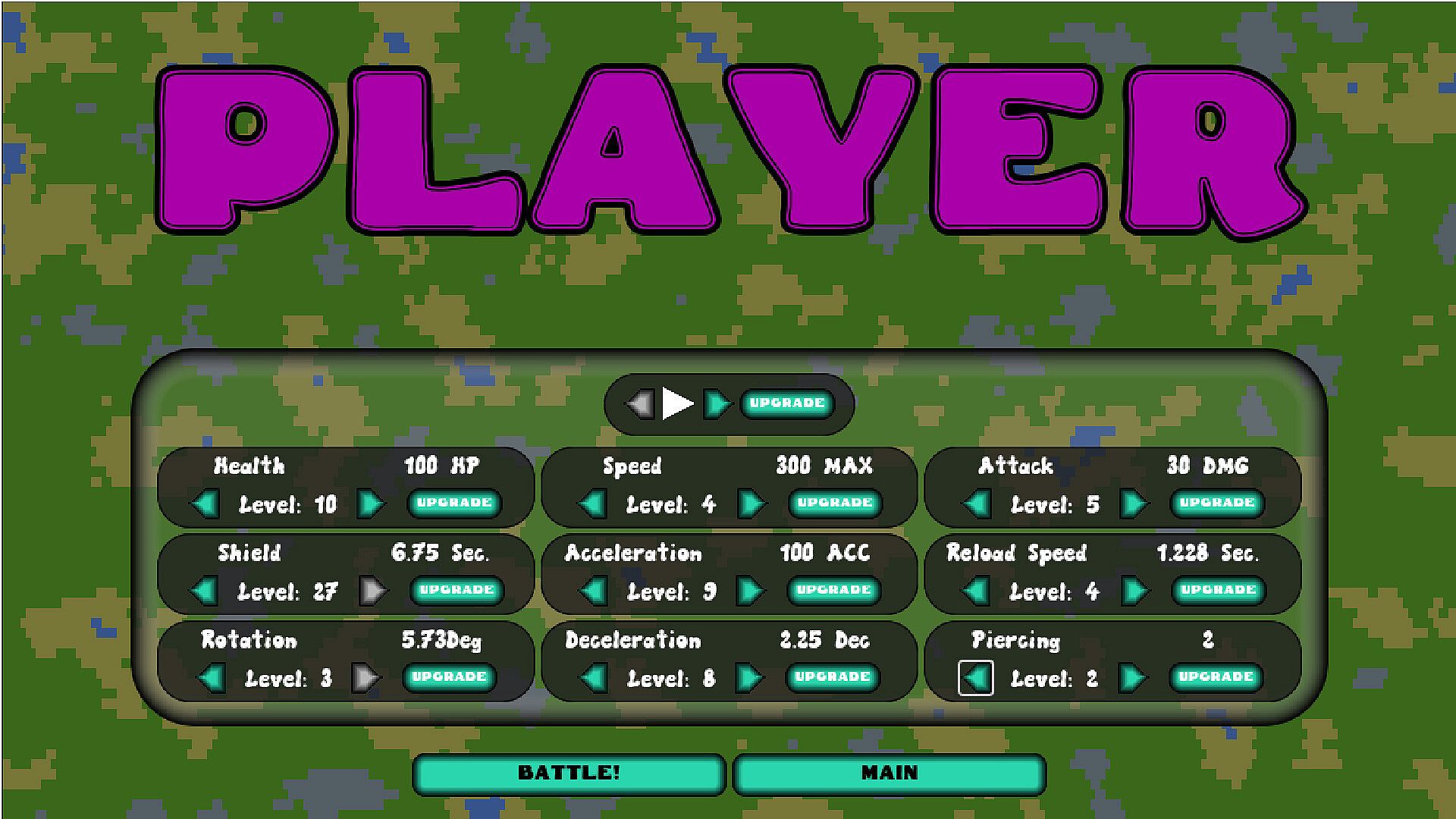 Level-Up your ship to allow for more Mobility, Damage, Health, or Shield.