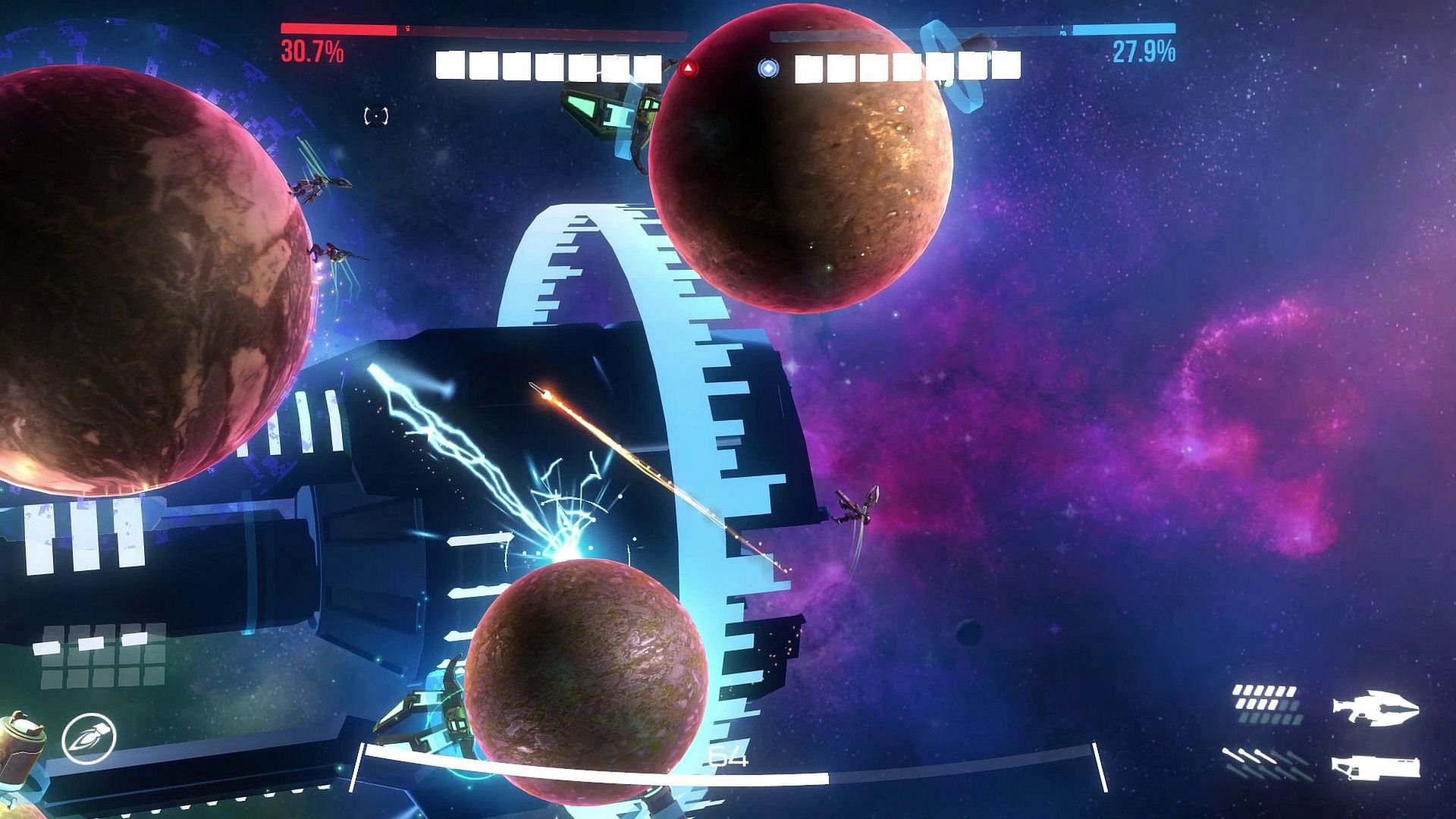 - Get ammunition and health from energy cores, spawned from every opponent destroyed. In Orbital Warfare you can also save them to charge your planets super weapon to destroy the opponents planet once and for all!