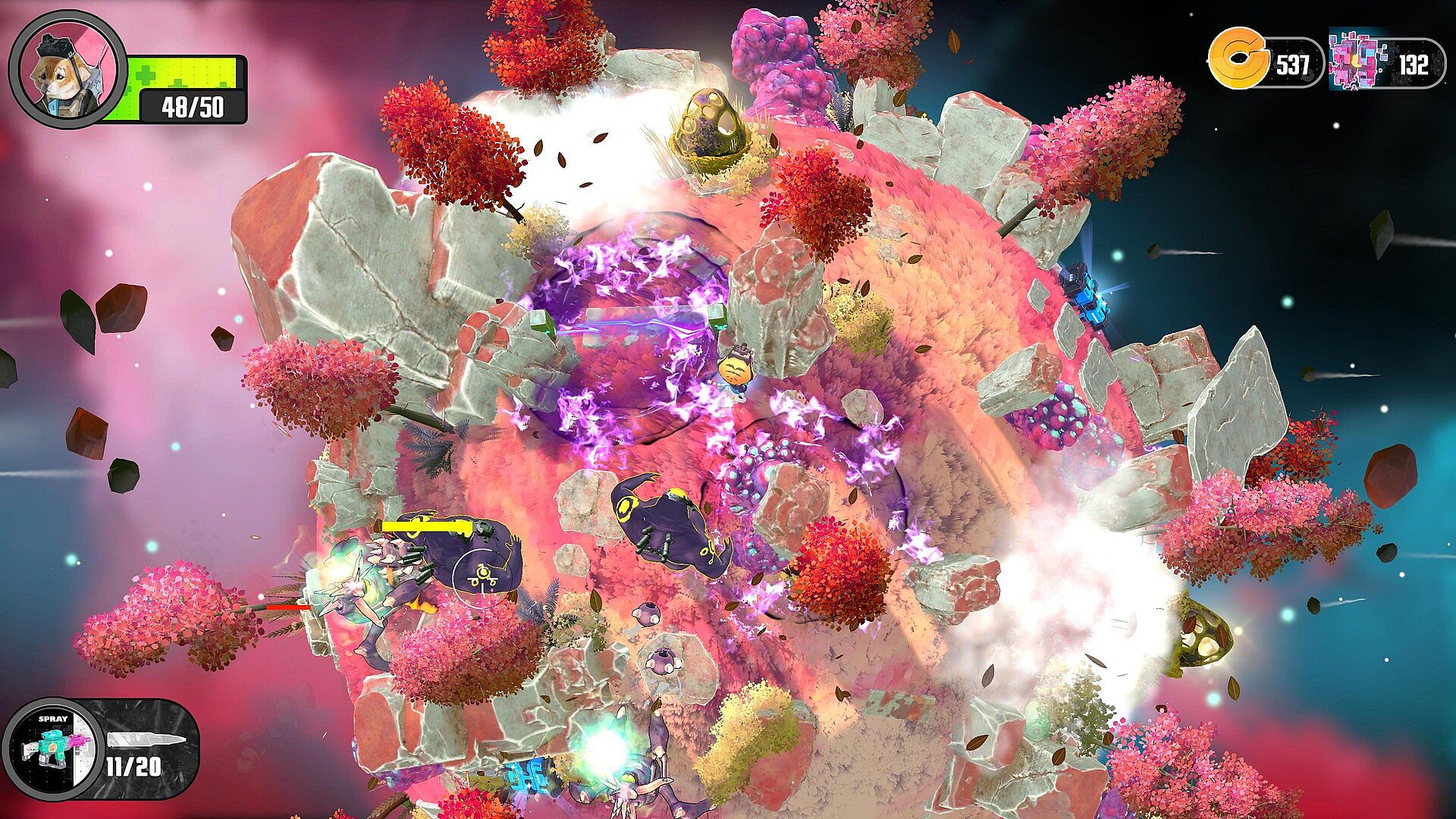 Throughout each run, players discover upgrades and boosts that modify weapons and abilities, enabling powerful synergies and evolving playstyles. Combined with procedural planet generation, varied enemy encounters, and escalating difficulty, each run offers a fresh, unpredictable experience built around experimentation, mastery, and survival.