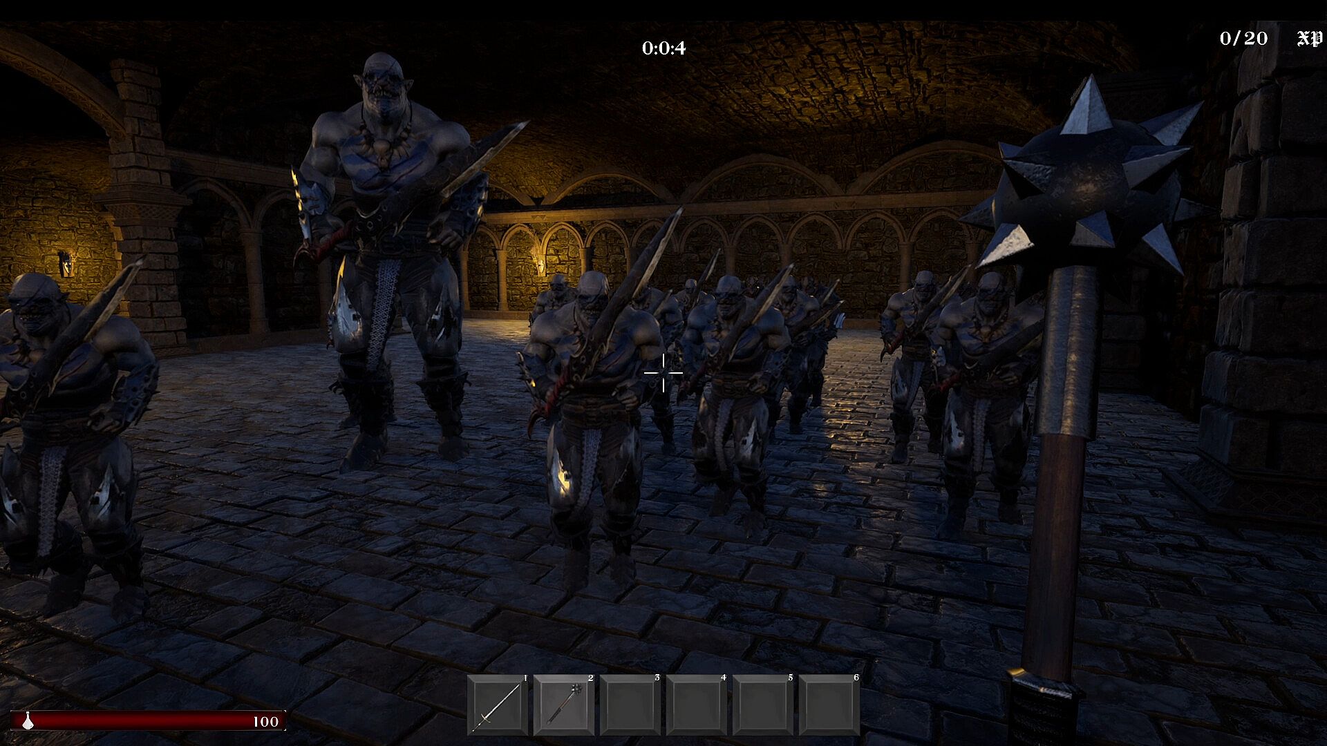 The intense action of the reverse bullet hell genre meets first person shooter style combat. Choose your weapons and your arena wisely as you will have to battle hordes of relentless orcs. Unlock new weapons and upgrades to become a legendary warrior.