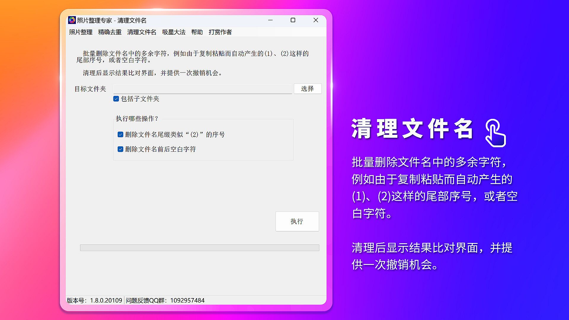 Batch delete excess characters in file names, such as tail numbers (1), (2) that are automatically generated due to copy and paste, or blank characters.