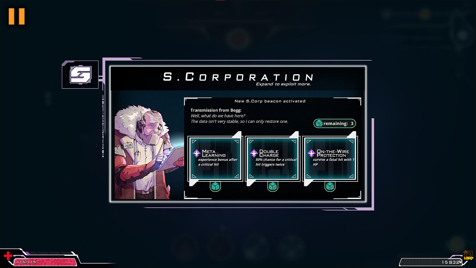 Each battle strengthens your ship, and discoveries made across the galaxy can influence your chances of victory. And if you're in a bind, you can always visit your favorite coworker Bogg, who will gladly sell you upgrades at outrageous prices.