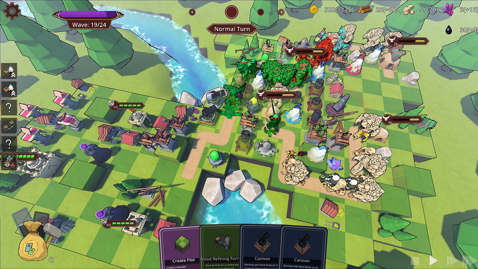 The board tiles change every round, creating countless possibilities. Can you adapt, use every terrain and resource wisely, and withstand endless waves of enemies?