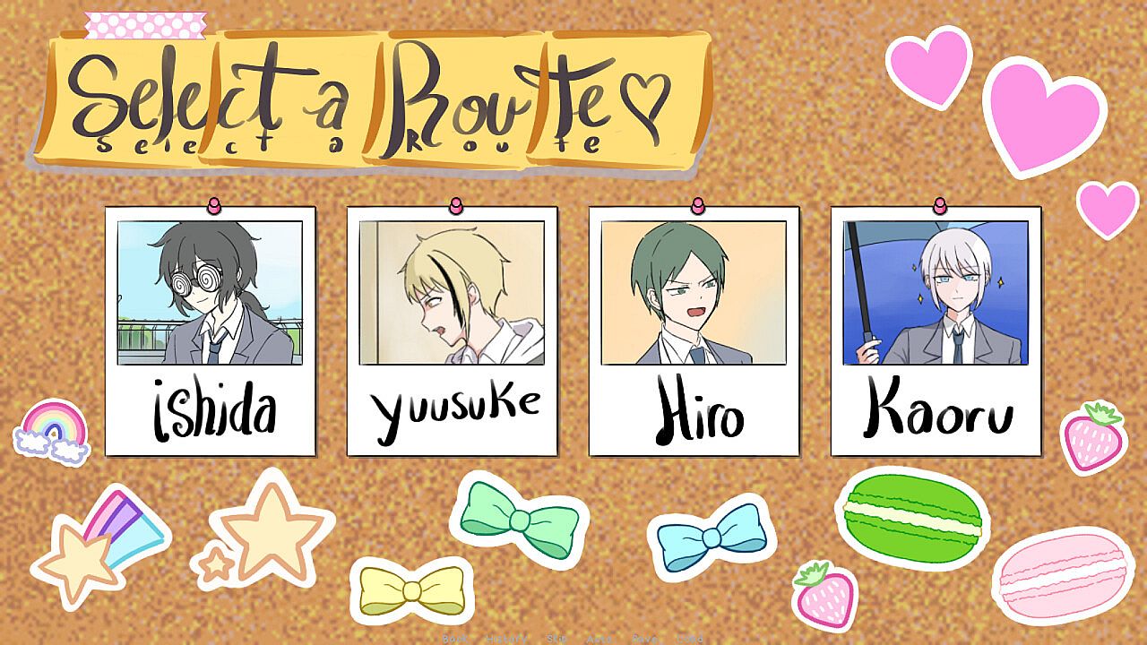 ~~Select routes and earn hearts to clear each route! Earn 3 hearts to end up with your favorite love interest!~~