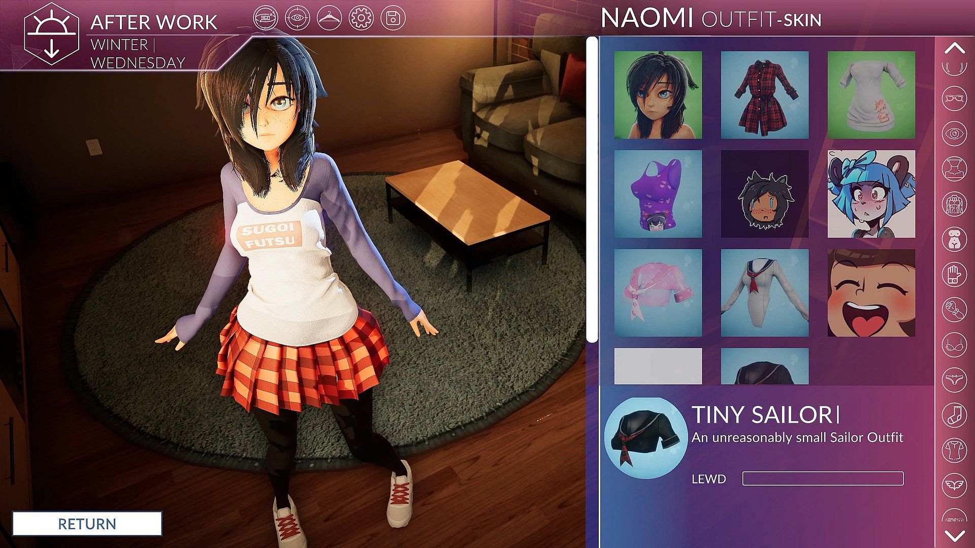 • Clothing customization of Naomi including casual to sexy outfits and costumes like Werewolf, new items and variants added all the time! Currently over 500 individual items and variant items!