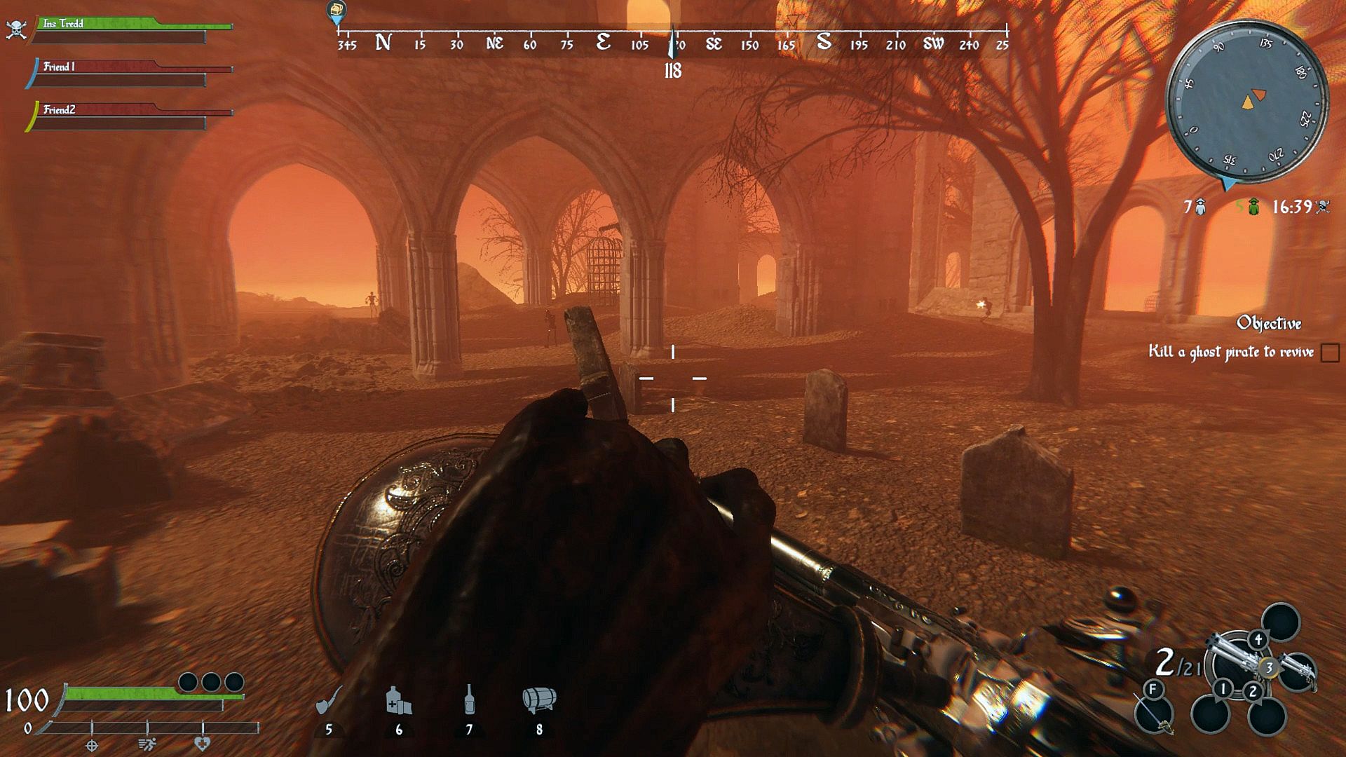 Enjoy variety of firearms to find and upgrades to attach, starting from a flintlock pistols and 4 barrel revolvers all the way up to revolving rifles and hand cannons - everything that a properly prepared pirate would need in order to deal with opponents and still find fun in it. Those who need bigger calibers should take a look at cannons and mortars mounted on their ships. Or just steal one.