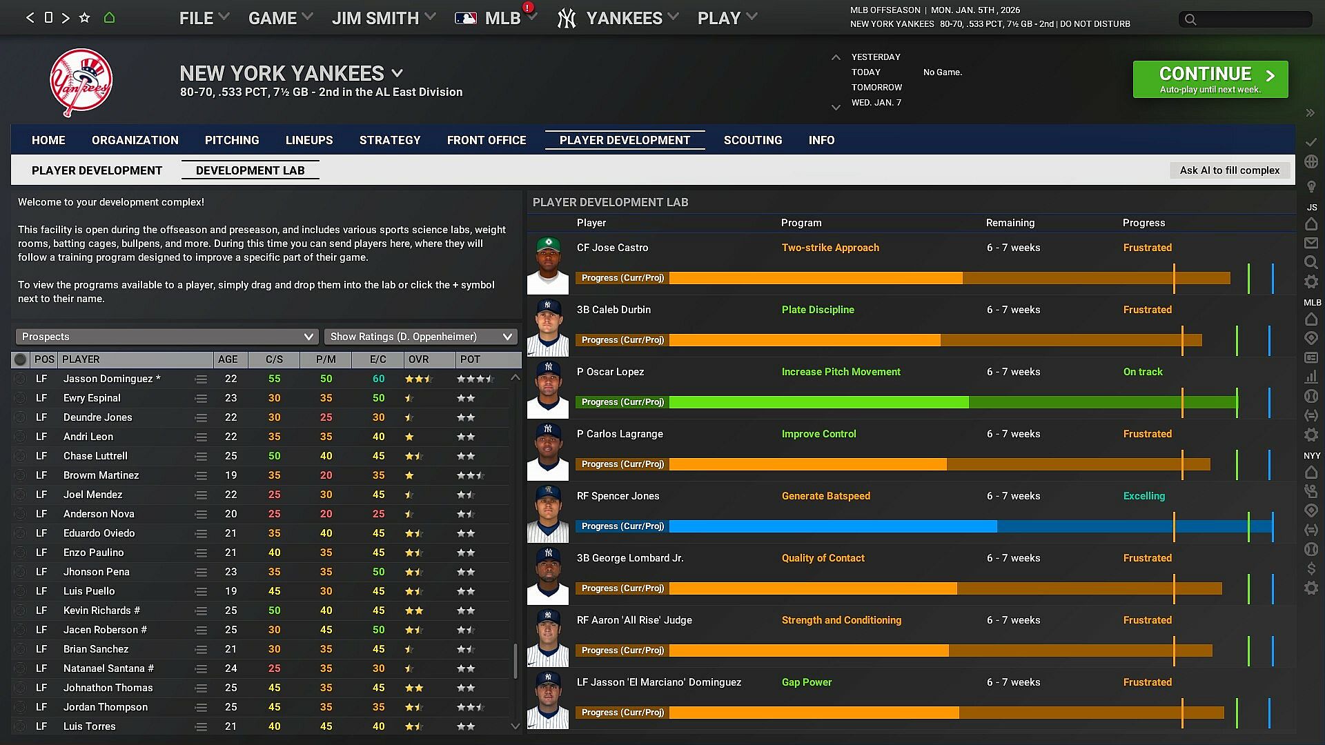 Our popular new single-player feature gets bigger and better this season! New progress bars improve clarity and allow you to track your players even more closely. Midterm progress reports now also give you a better idea on how your players are performing and allow you to be even more hands-on. Have a guy struggling to improve his plate discipline and don’t want to keep him in the lab for any longer? You can now cut your losses and free up the space for someone else. With new game settings, refined programs, fun news from around the league, and more, experience the development lab on a whole new level!