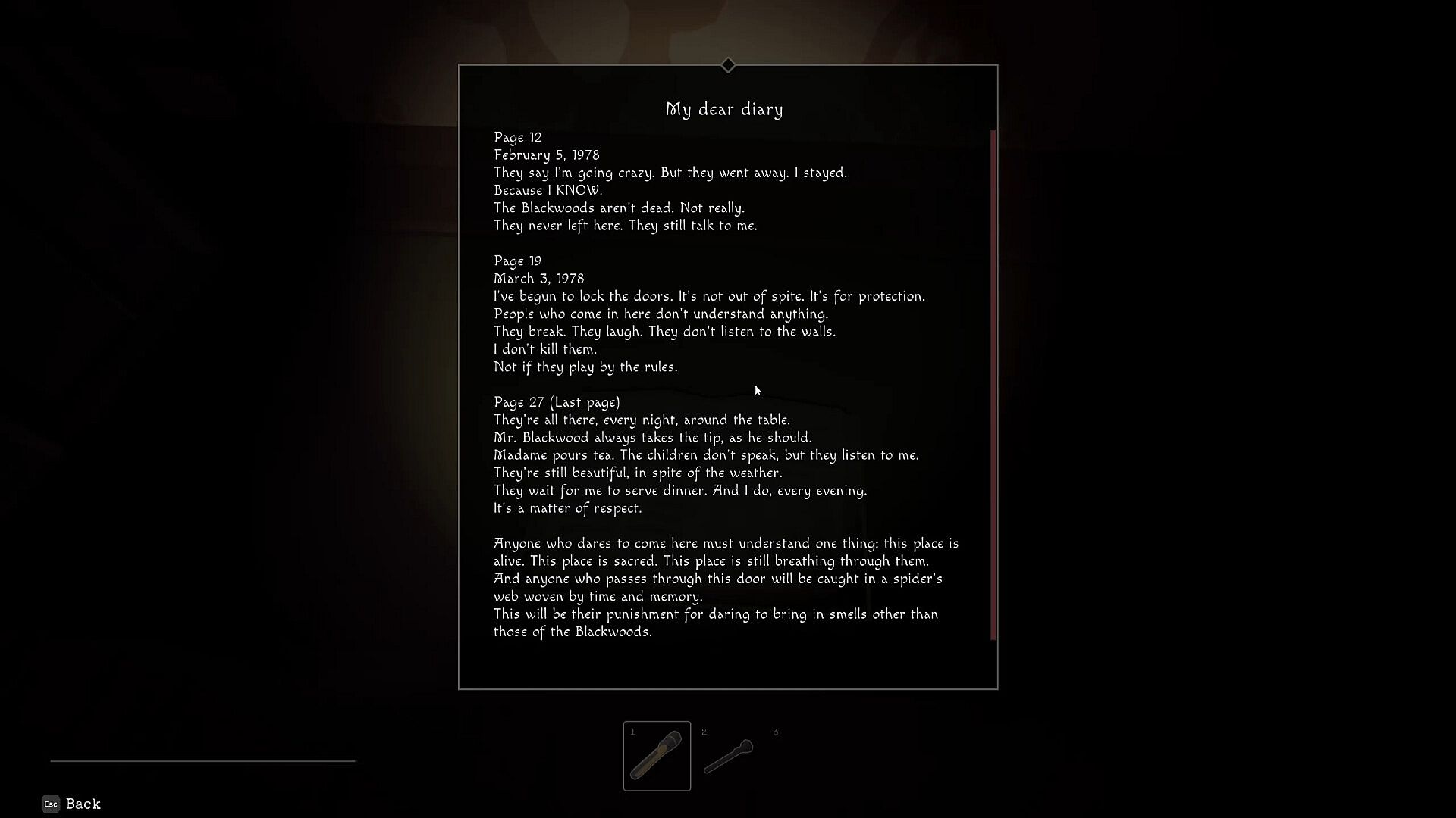 Each map throws you into a new unsettling environment: a cursed mansion, a dark forest, an abandoned cabin... Search carefully, interact with your surroundings, and piece together the events that took place.