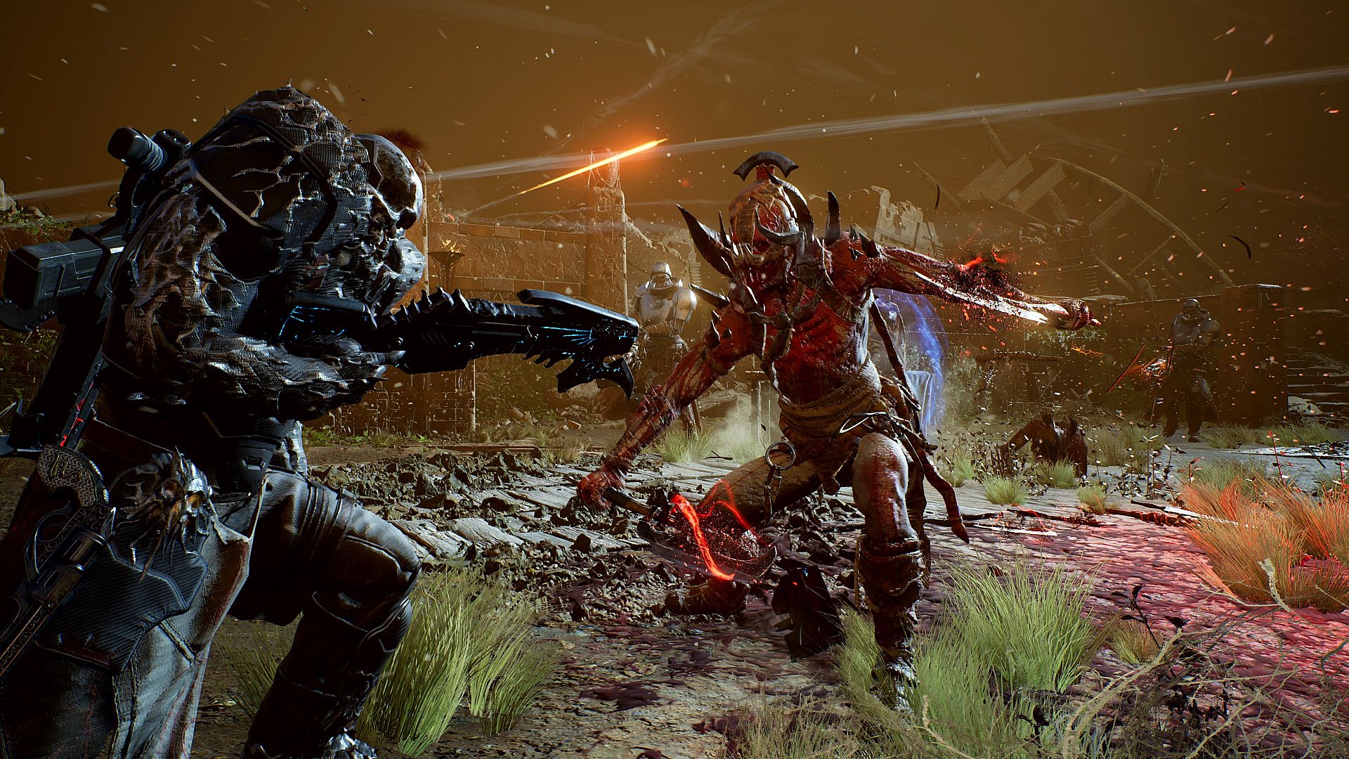 Equip yourself with twisted guns and gear with unique savage sci-fi designs made from heavy, brutal metal and feral organic materials. And transmog your appearance effortlessly to any piece of gear you've collected.