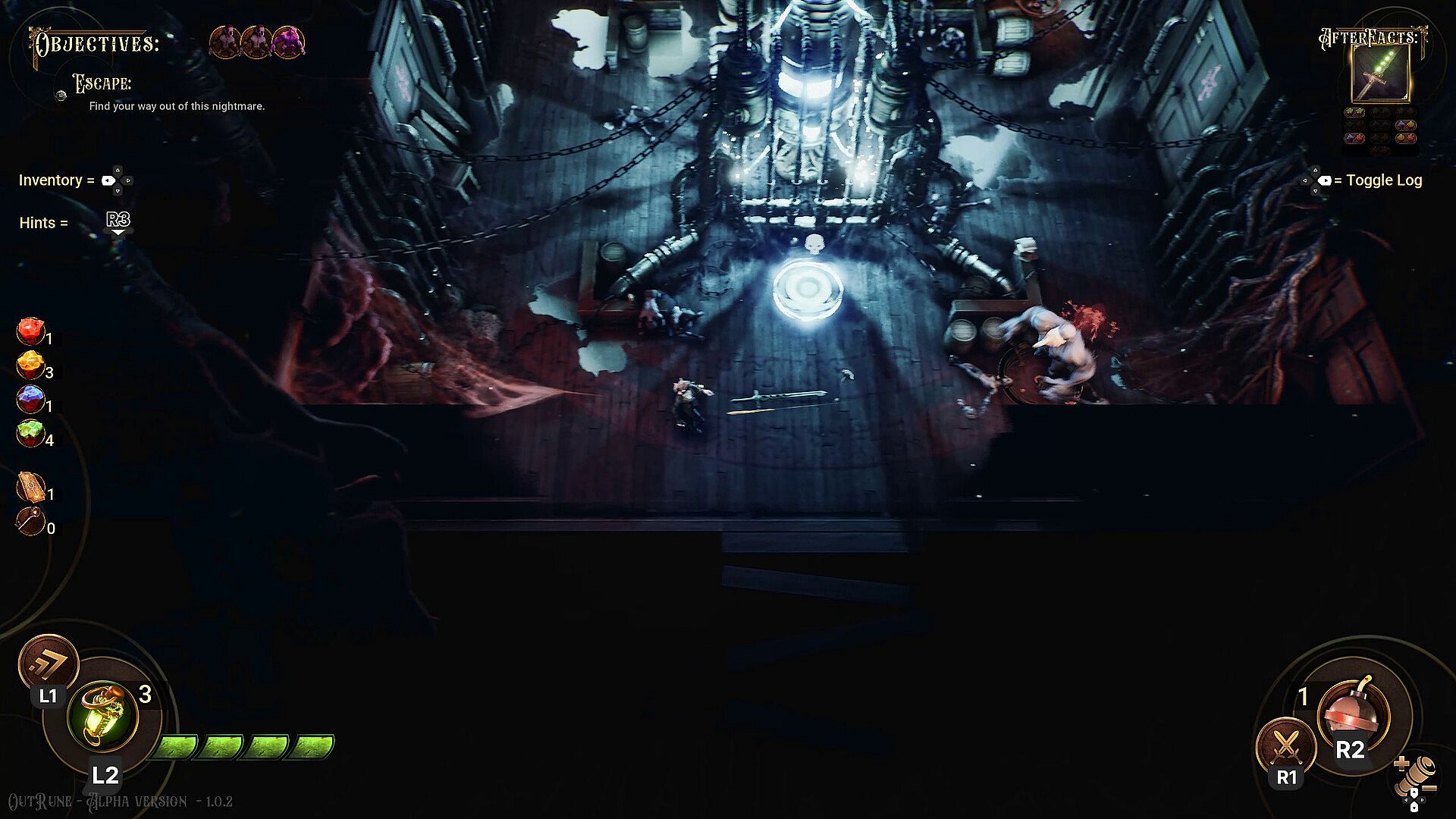 Captured by 'The Rune-less', a dark and powerful being, you must take Orillia on her journey to escape imprisonment while struggling to keep her grasp on reality due to a broken and faded memory caused by years of torment and failed escape attempts. To escape this nightmare, you must vanquish rooms of minions, who are only alive to serve the bidding of their master whilst he experiments with different ways to increase his power. Along her journey, Orillia will encounter many obstacles that you, the player, must help her overcome, including mysterious powers and curve balls from The Rune-less that could completely change your approach. In the universe of OutRune, every person is born with a powerful rune encased into an item/artefact that becomes that person's 'AfterFact'. During Orillia's escape, she will find these AfterFacts along the way. She can upgrade her AfterFact and the ones she finds by utilising the machines created by the Rune-less and his following of Greheem tinkerers.