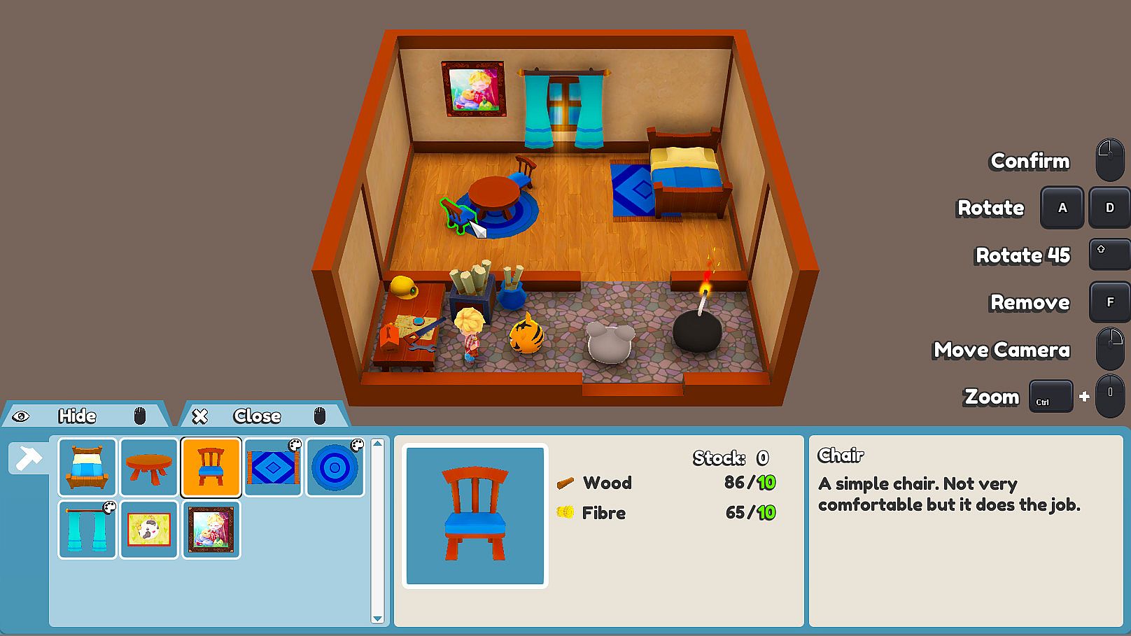 Gather resources to craft new useful blueprints with the workbench or decorate your farm and home!