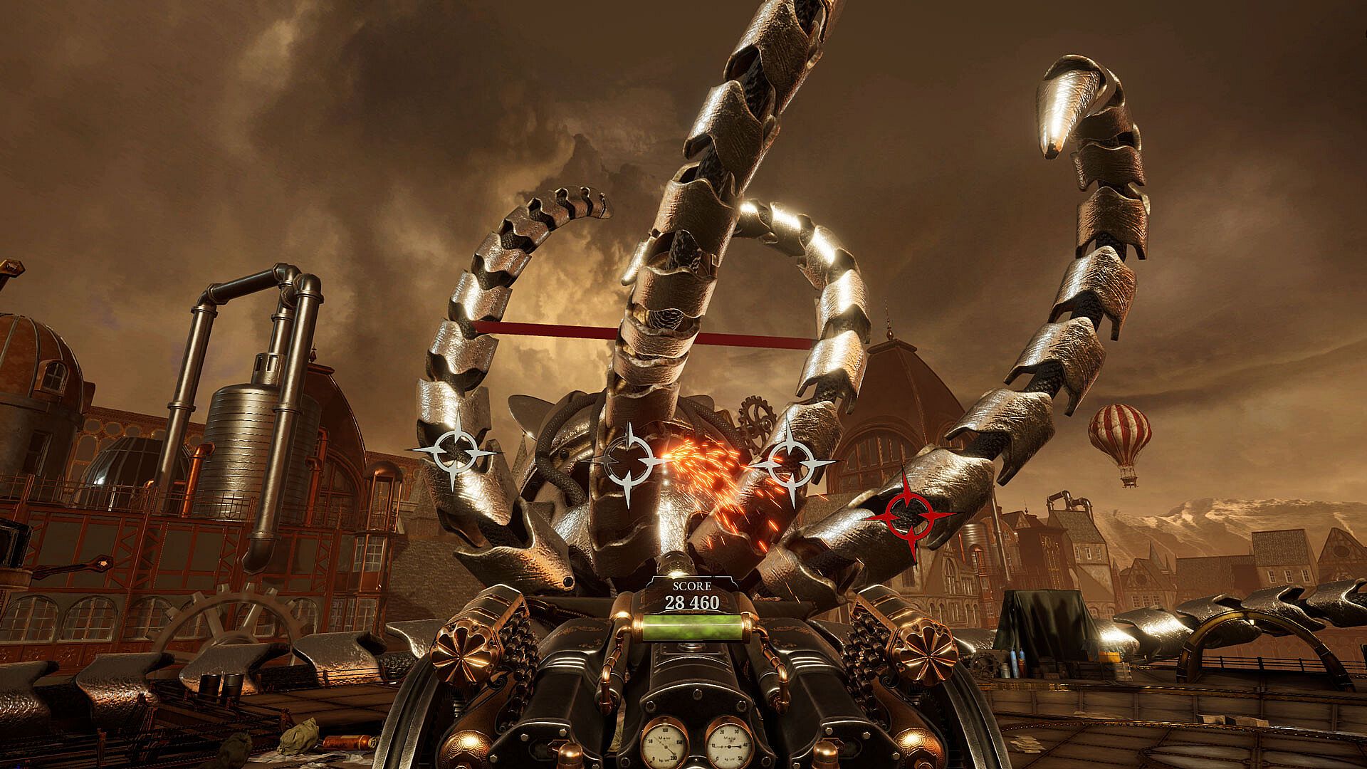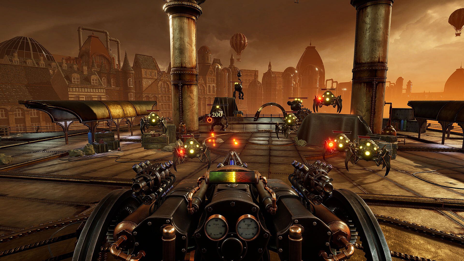 Aim, track, and tear through waves of mechanical enemies as they storm your flying ship. Hold the line under constant pressure and face a massive foe breaking through your defenses.