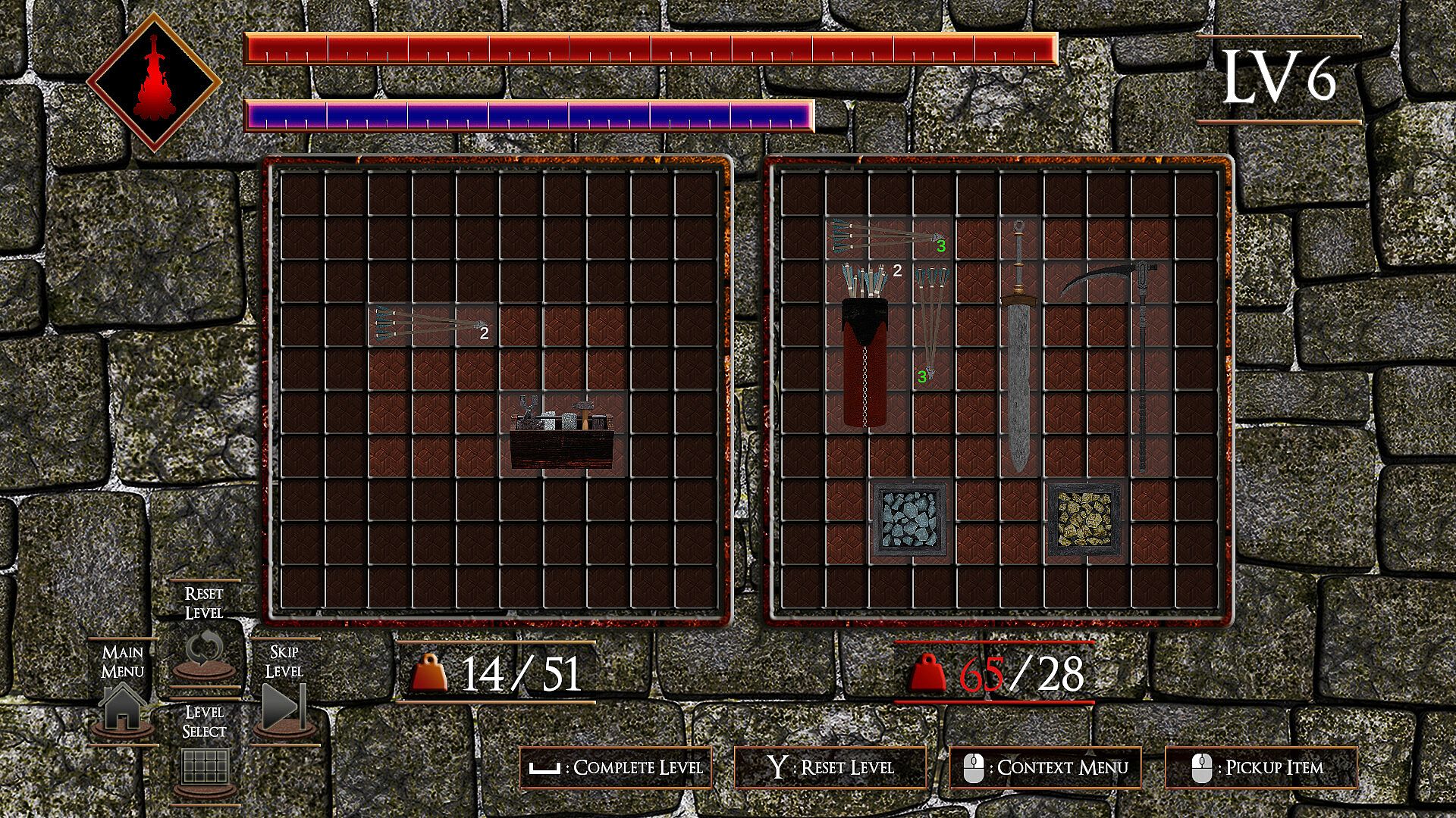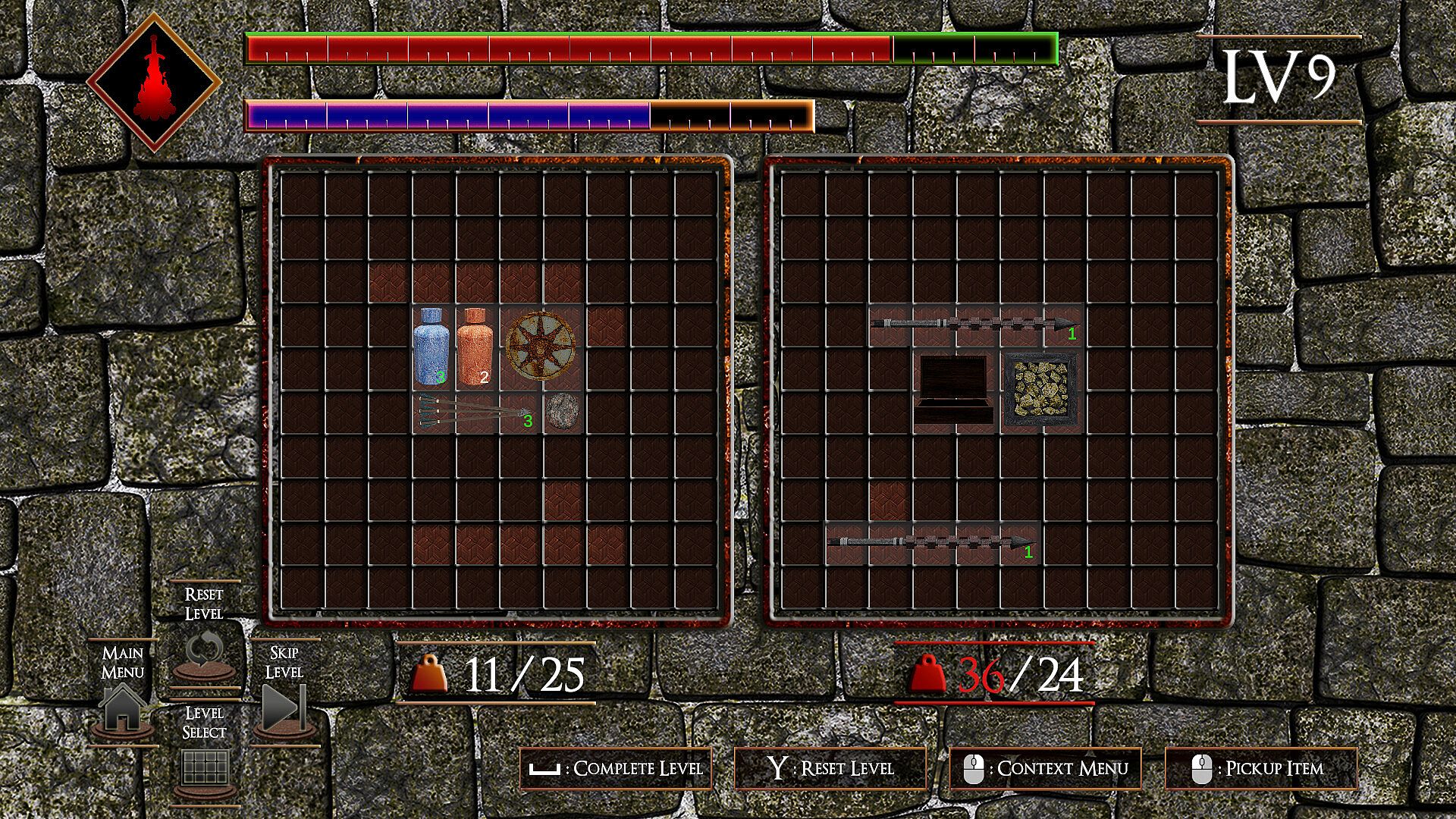 Arrange items to fit them into your inventory: