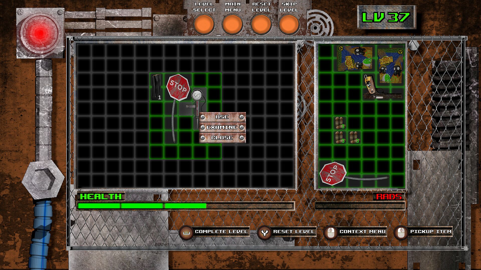 Consume items to refill your health, but beware of radiation: