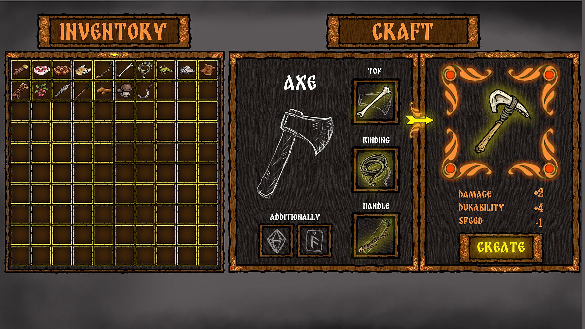 - Craft your own path: With our innovative non-linear crafting system, you don't just follow recipes, you create them. Experiment with different materials to forge powerful tools, weapons, and artifacts. Alchemy and cooking are your playgrounds for experimentation, each with its own magical surprises.