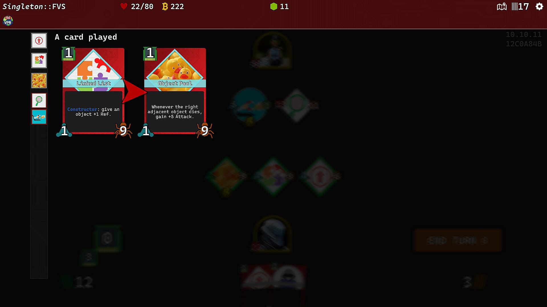 - On-screen calculator: The first game to give you more focus on planning your strategy by taking care of the chore of counting and calculating numbers for you. Just drag a rectangle on the screen to select things you want to calculate, and the game will show you how many HP, Attacks, Blocks, RAM Cost,... they have in total.
