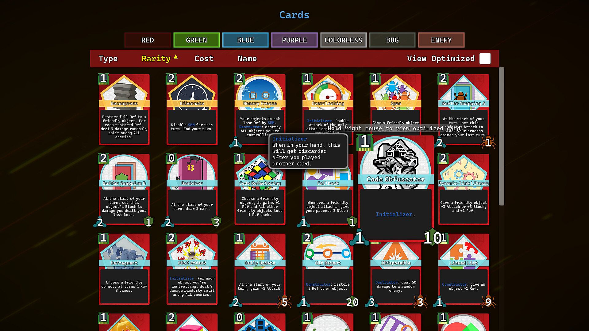 - Cyberpunk theme: In this game, you're an entity living in the digital space, you go through nodes to reach the center of the Net and defeat it. All cards and items in the game are computer programming-related.