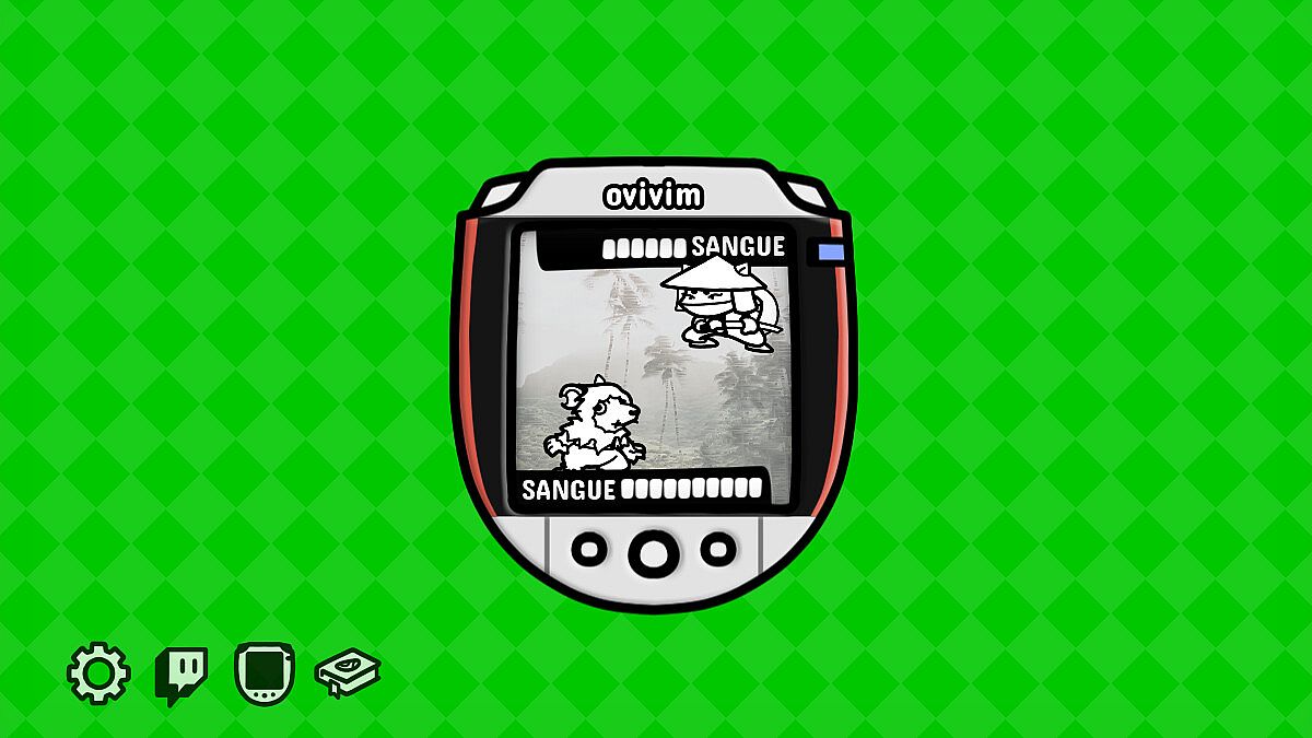Após seguir as instruções do assistente de introdução, que vai te ajudar a conectar o jogo ao seu canal na Twitch, o seu Aparelho Ovivim estará pronto, no modo atração, diante de uma tela verde.