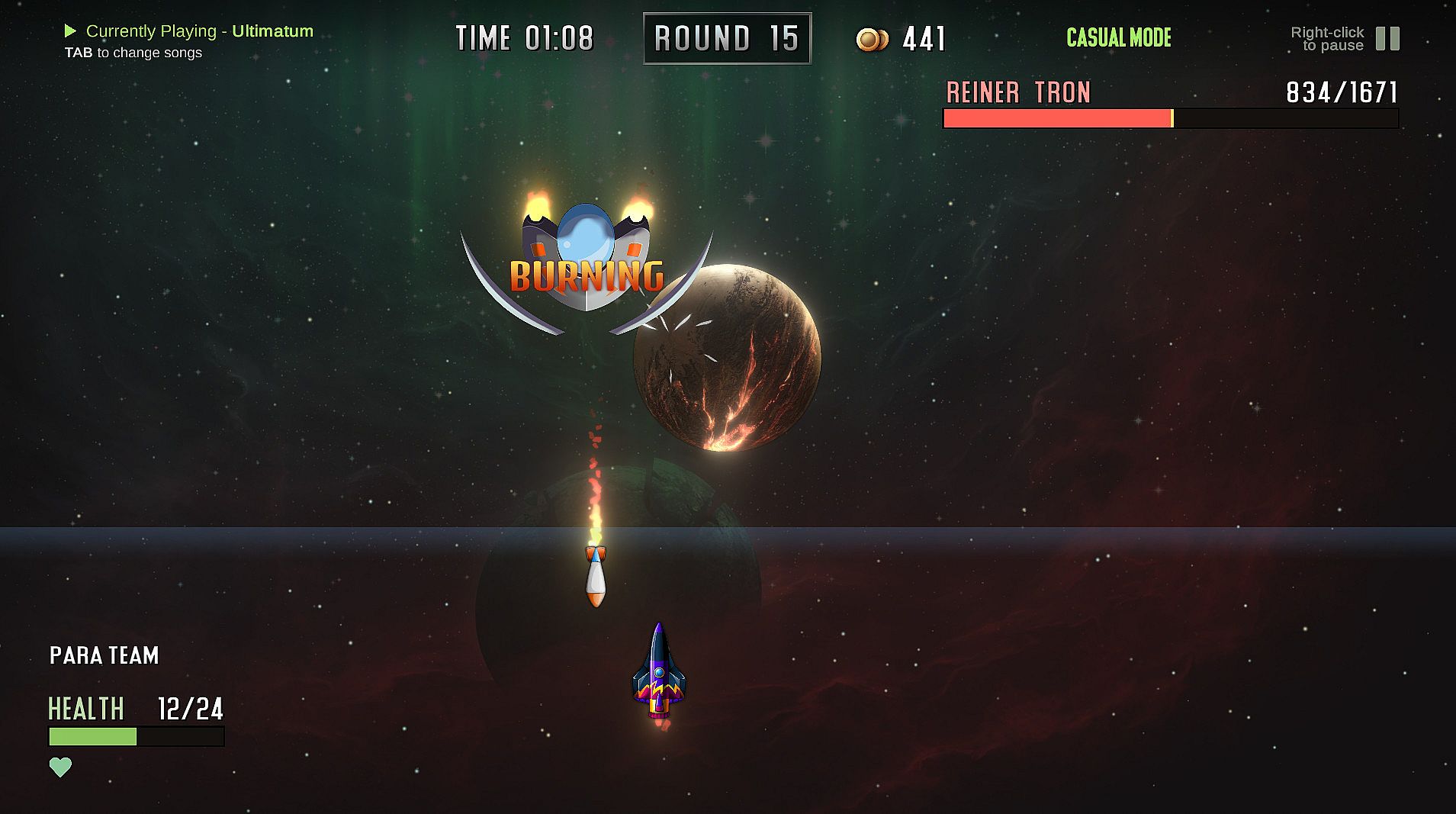 - An upgrade system that allows you to build upon your spaceship (power, size, speed, flame shots, homing shots, spread shots, and more!)