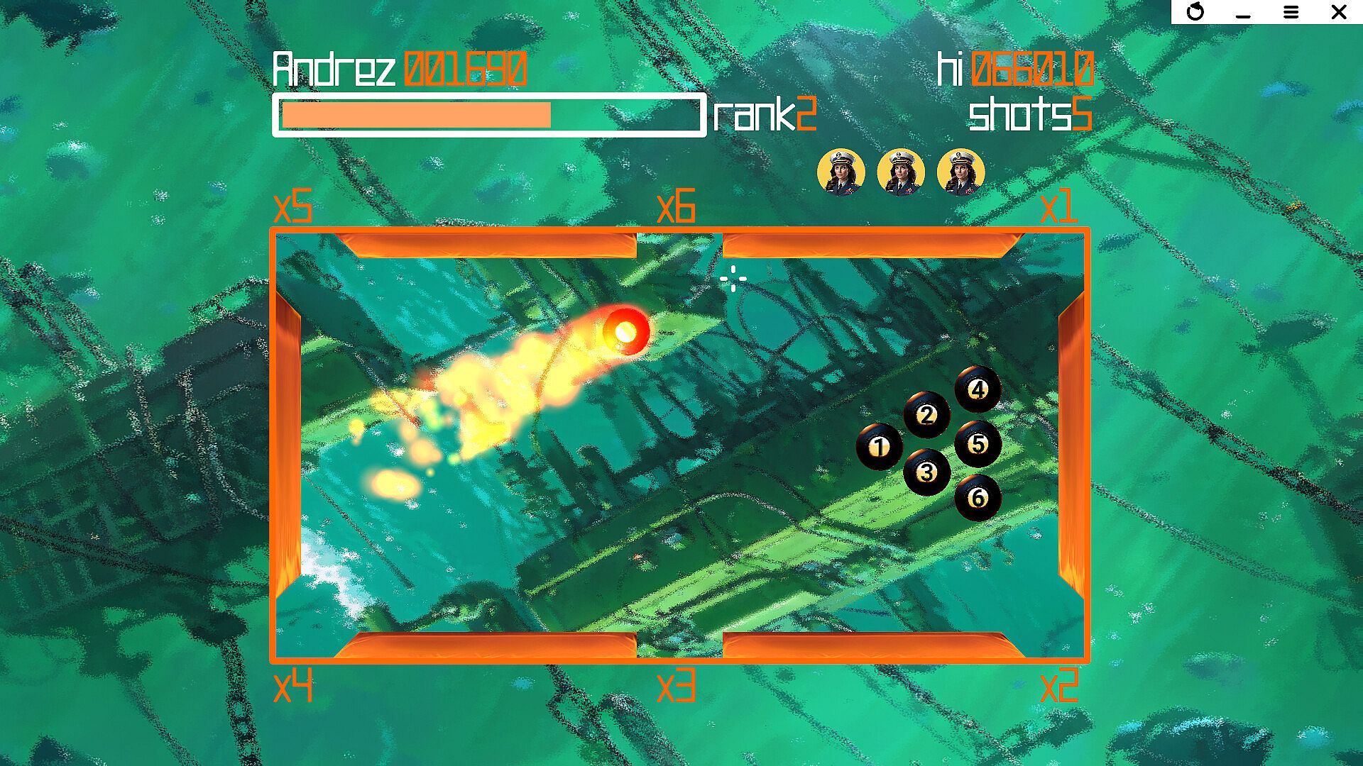 Your mission is to remove six mines, numbered from 1 to 6, from the seafloor using a remotely guided submersible drone. Select using the cross cursor and direct your drone with pinpoint accuracy. But beware, each move is a test of skill and judgment – one wrong shot and you risk a catastrophic underwater explosion.