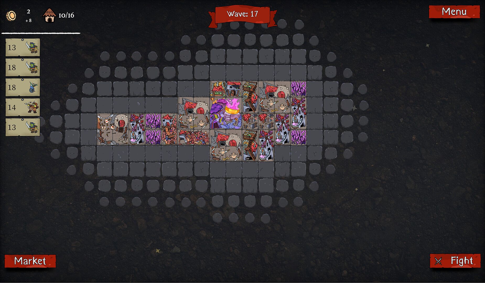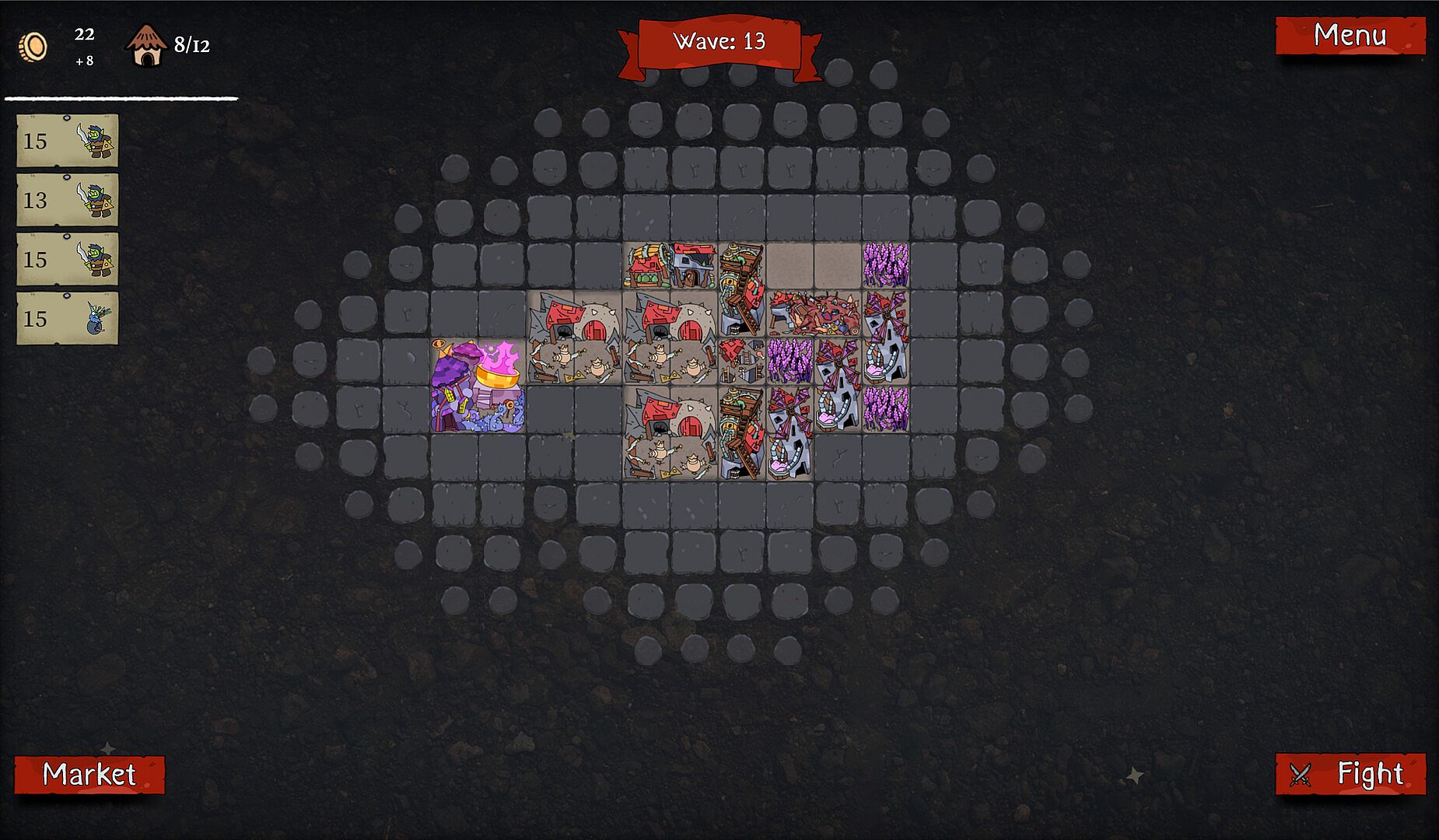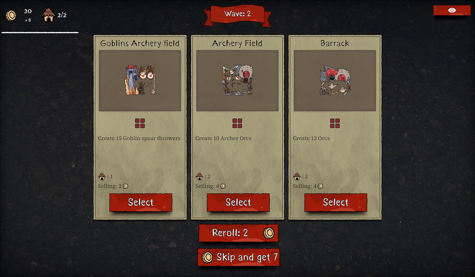 Packed Lair is a base building auto-battler roguelike where you place your buildings like in an inventory to create a powerful army of orcs, goblins and other monsters, then send them to defeat your enemies.